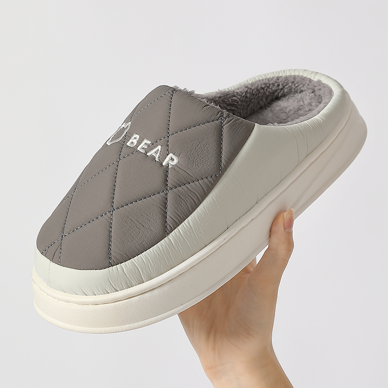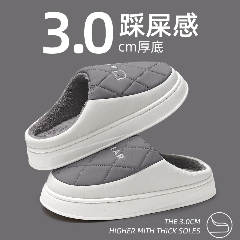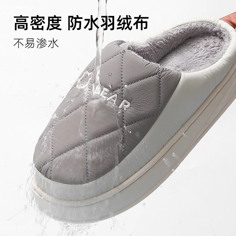 防水棉拖鞋男士秋冬季厚底室内居家羽绒布保暖男款踩屎感棉拖冬天
