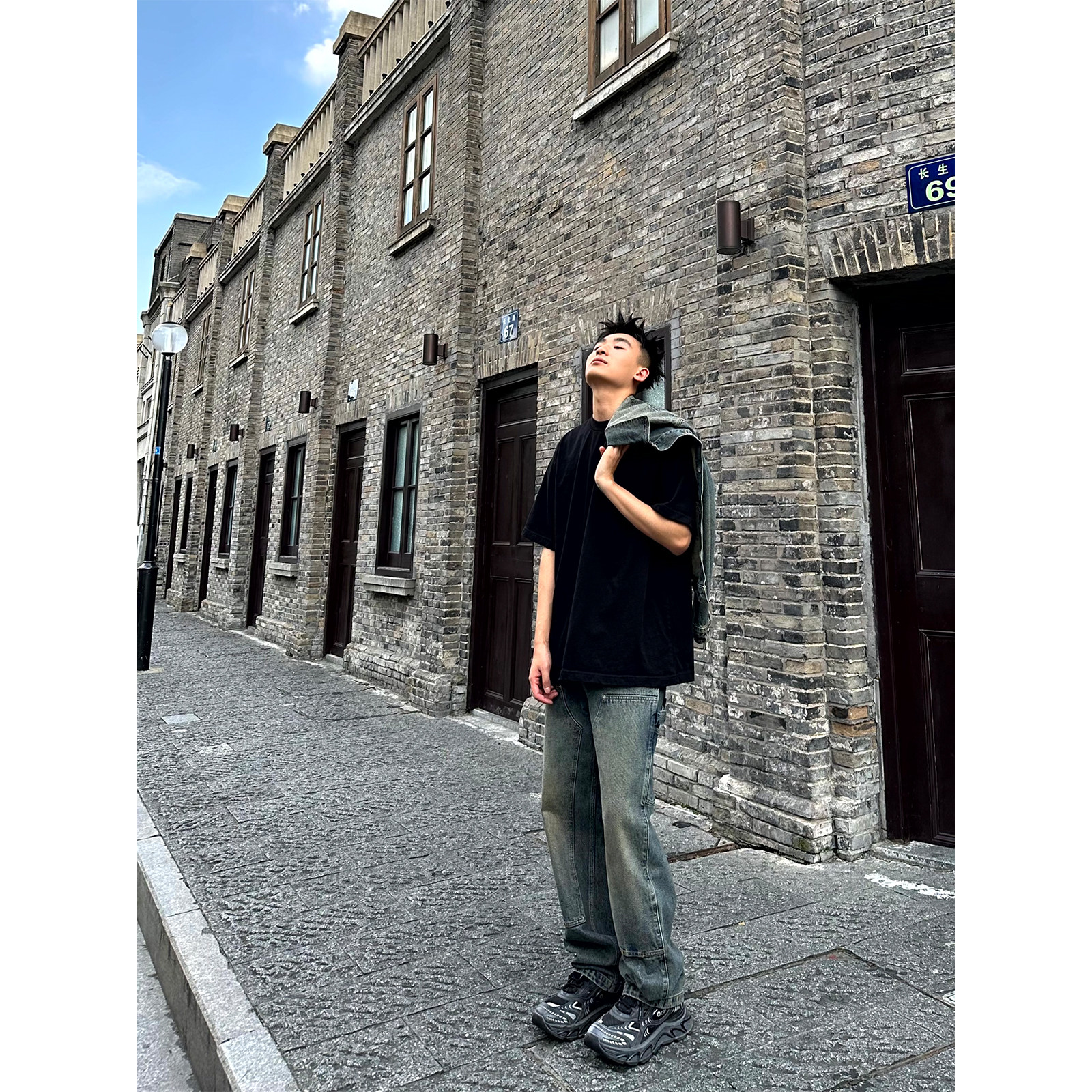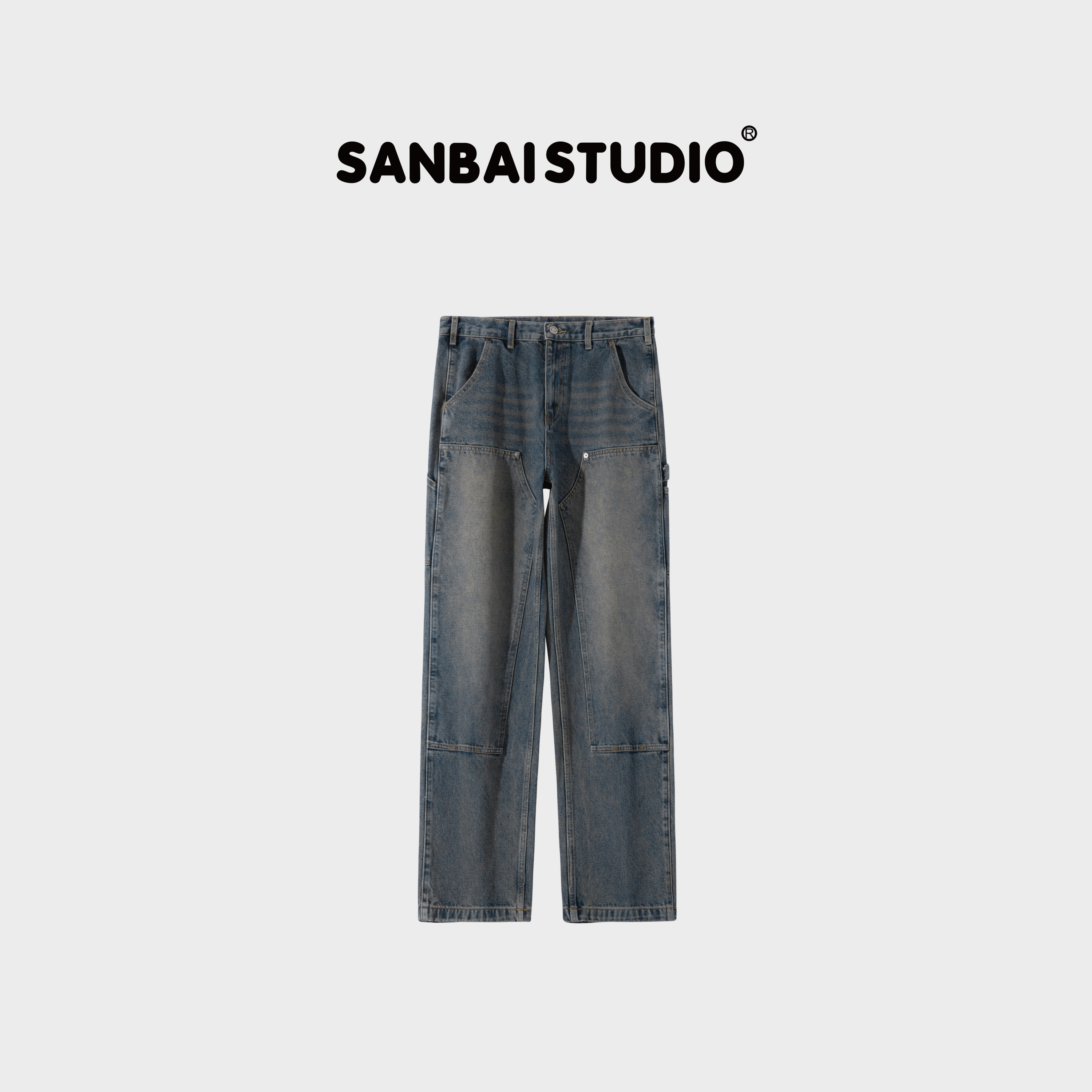 SANBAI 叁佰复古牛仔长裤男春秋季黄泥水洗直筒裤美式休闲伐木裤