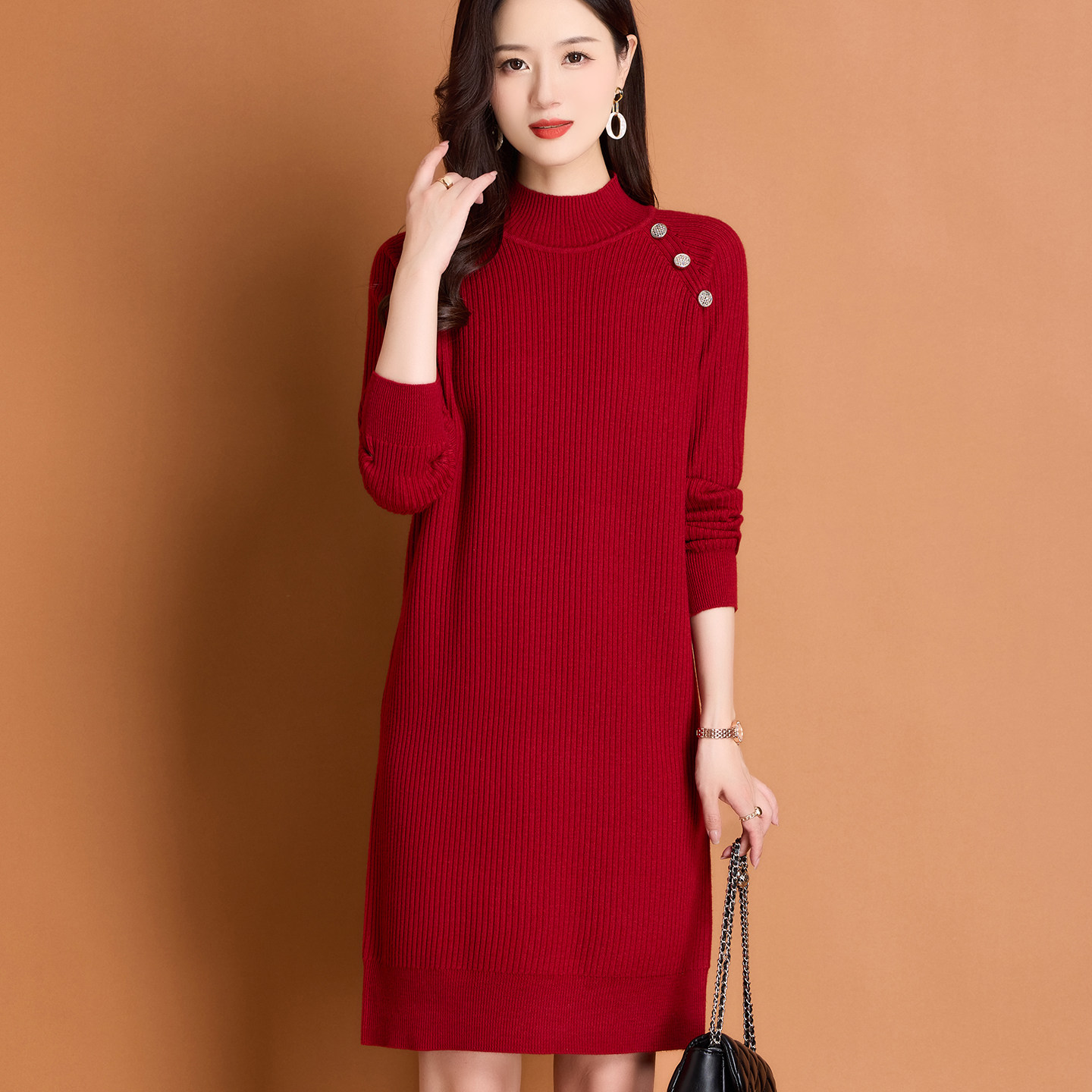 牧芮中老年女装秋冬毛衣裙打底衫