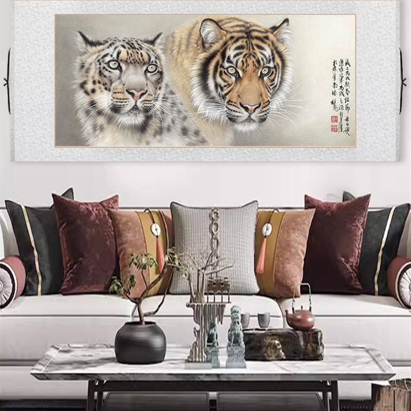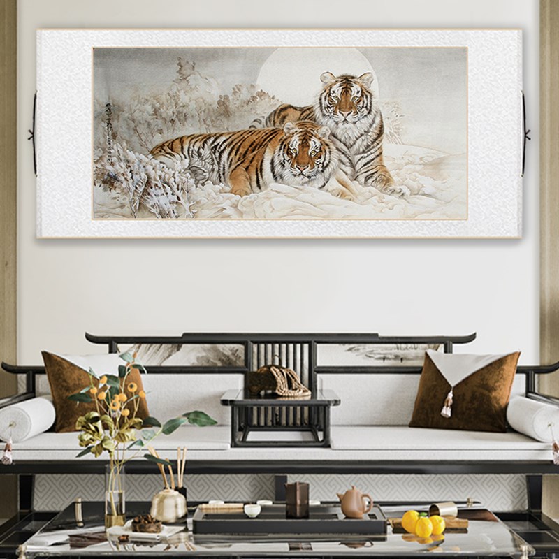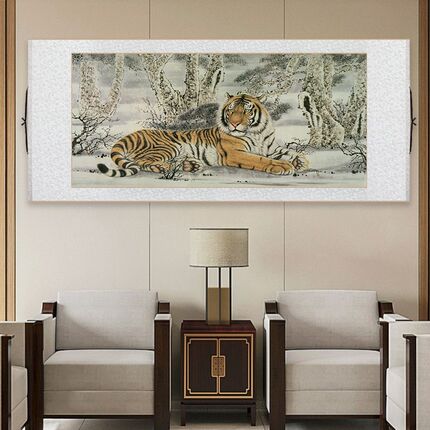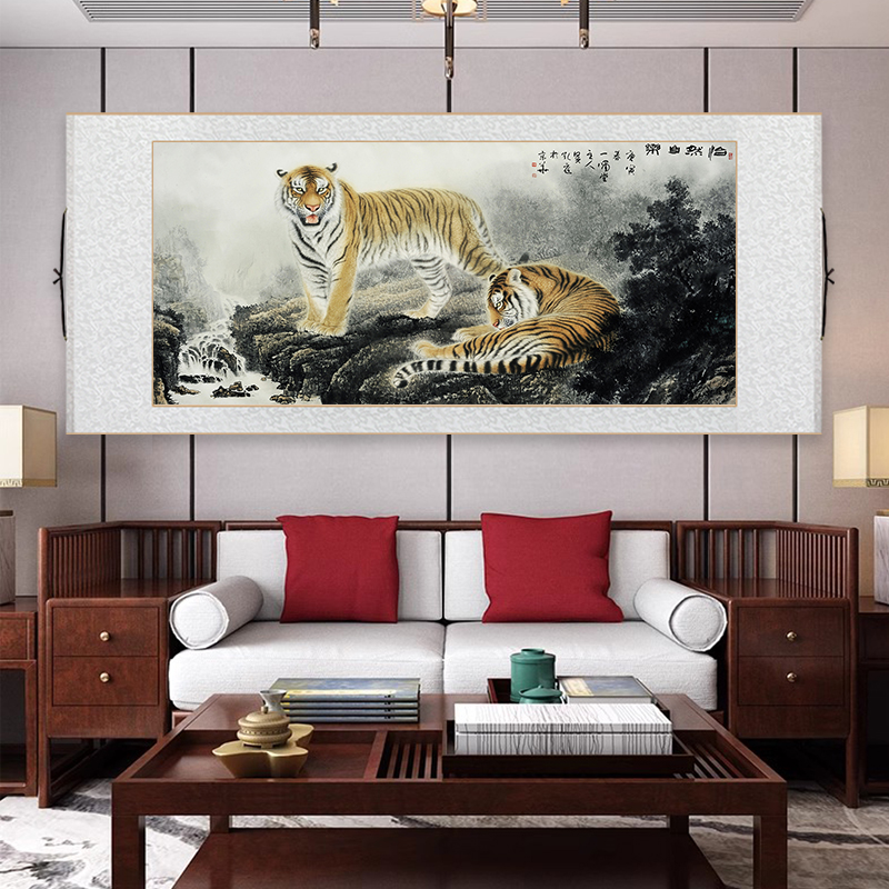 名家老虎挂画横板上山虎字画客厅玄关装饰画办公室书房背景墙壁画