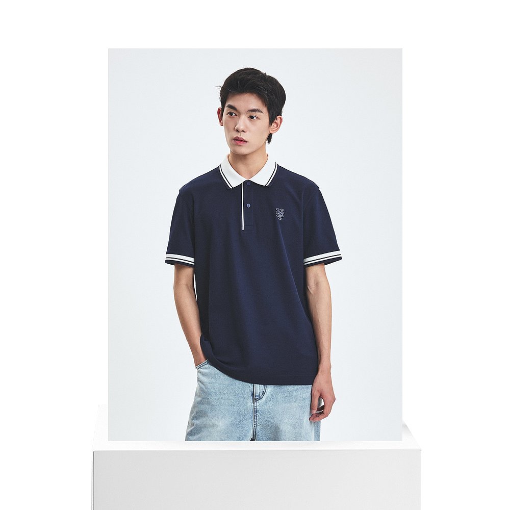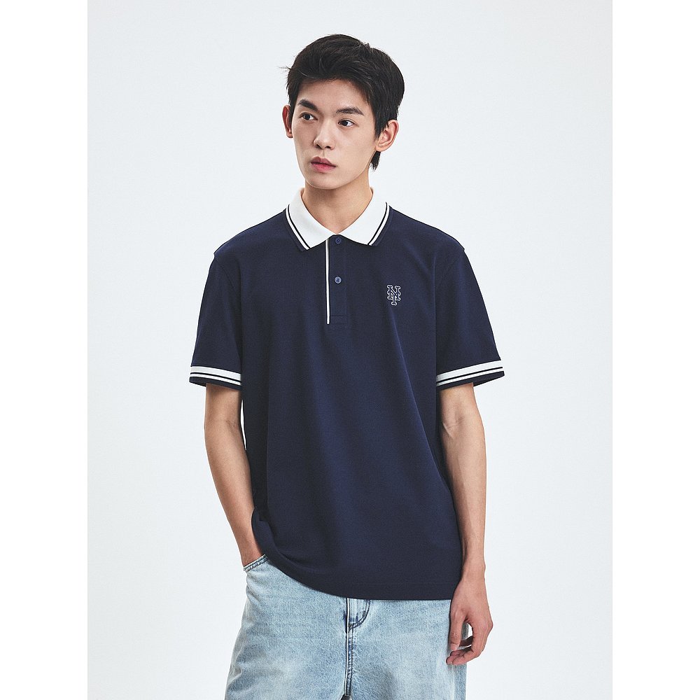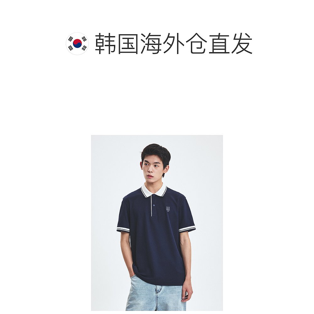 韩国直邮MLB 品牌Logo套头直筒短袖Polo衫 男女同款 海军蓝色