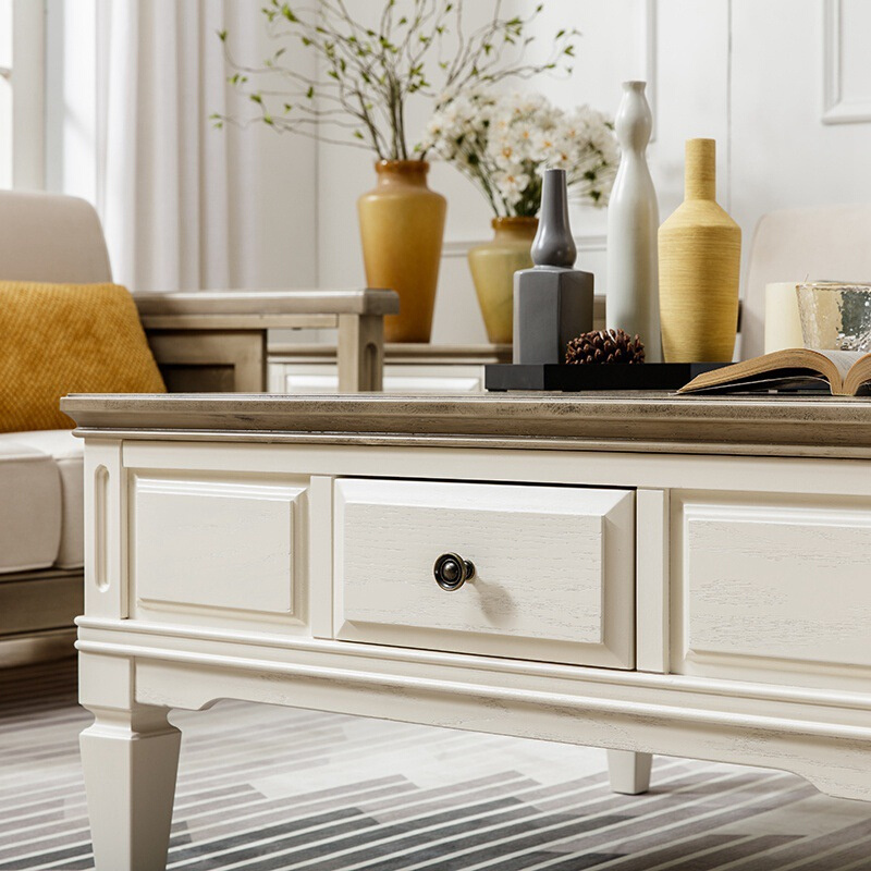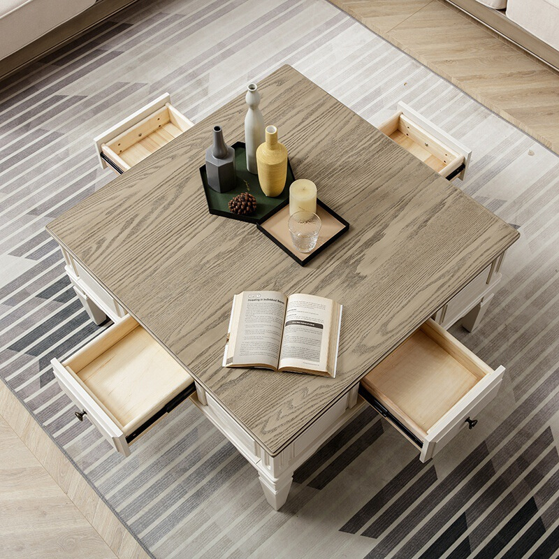 美式正方形茶几地中海纯实木原木家具小户型客厅复古咖啡桌子茶桌