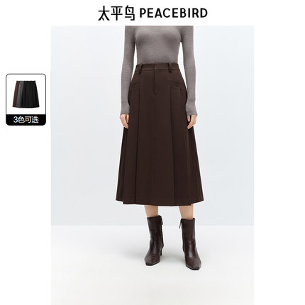 太平鸟 女士中长款高腰压褶半身裙24秋冬季新款通勤修身A字裙多色