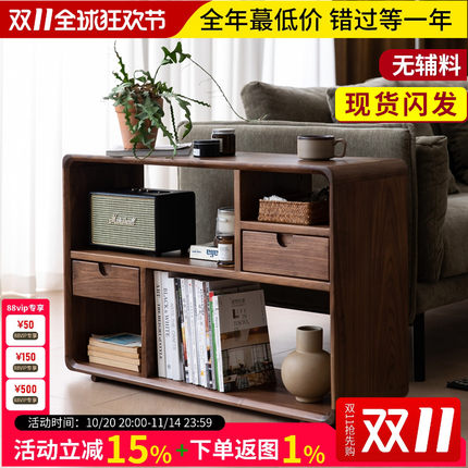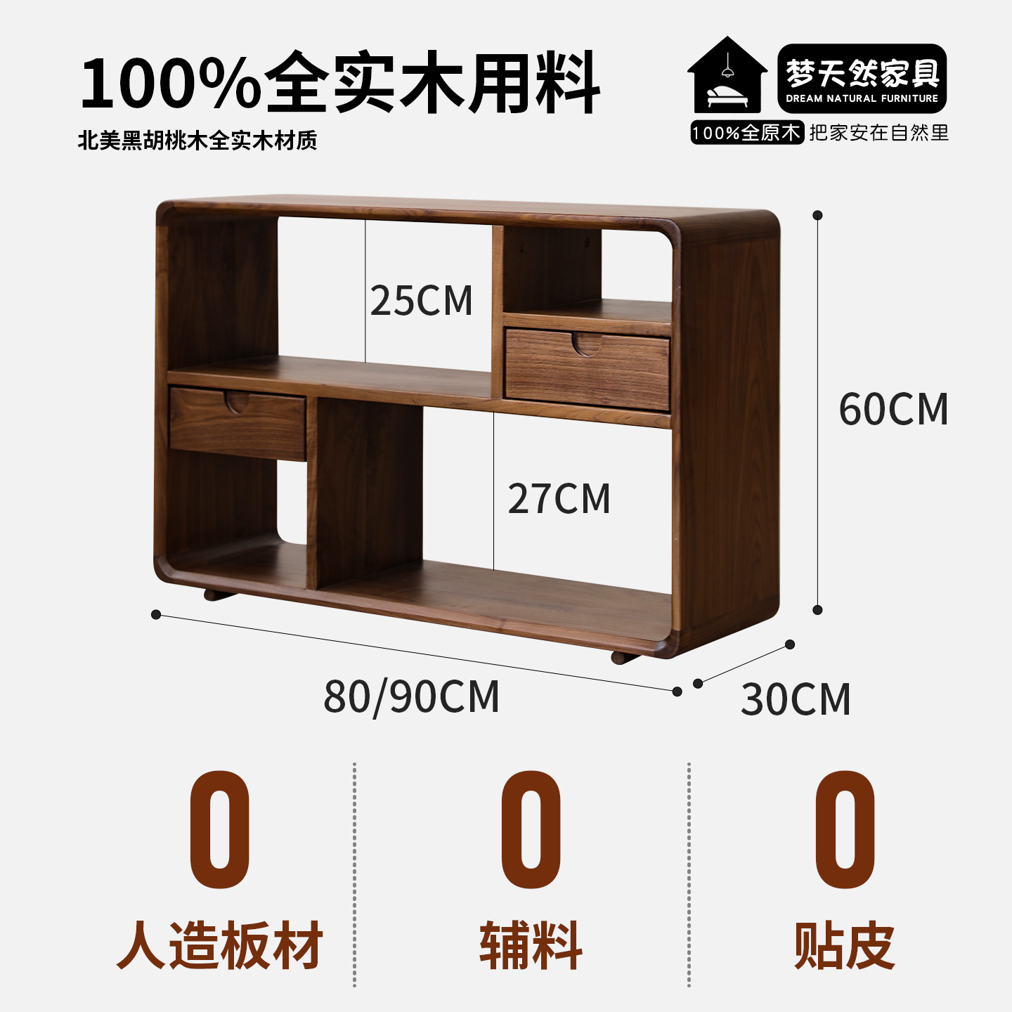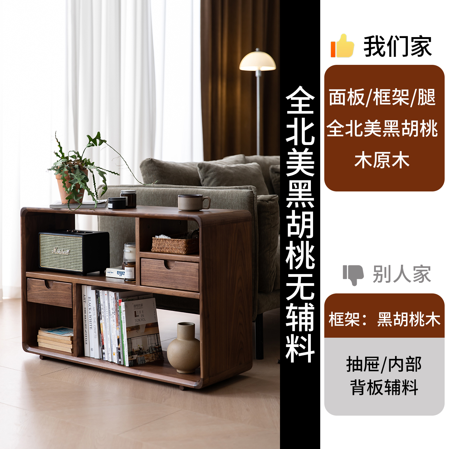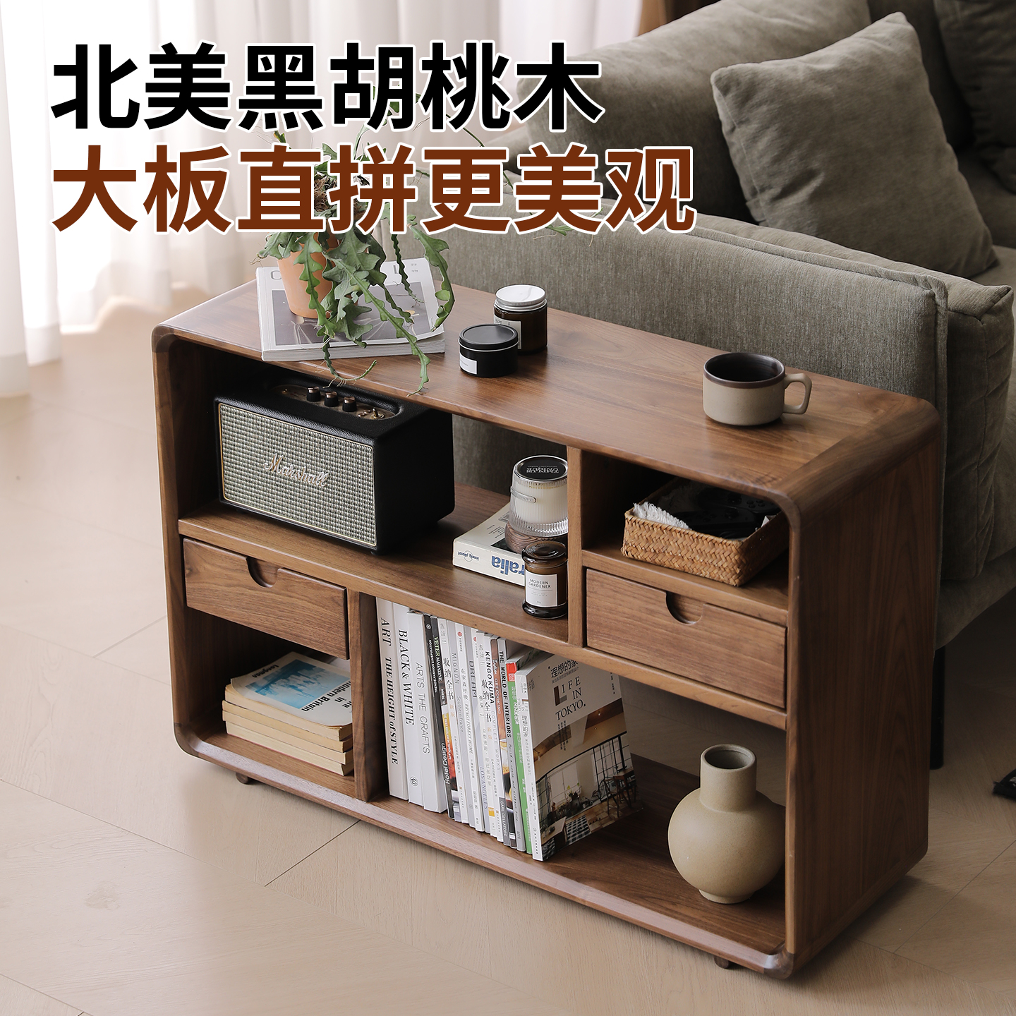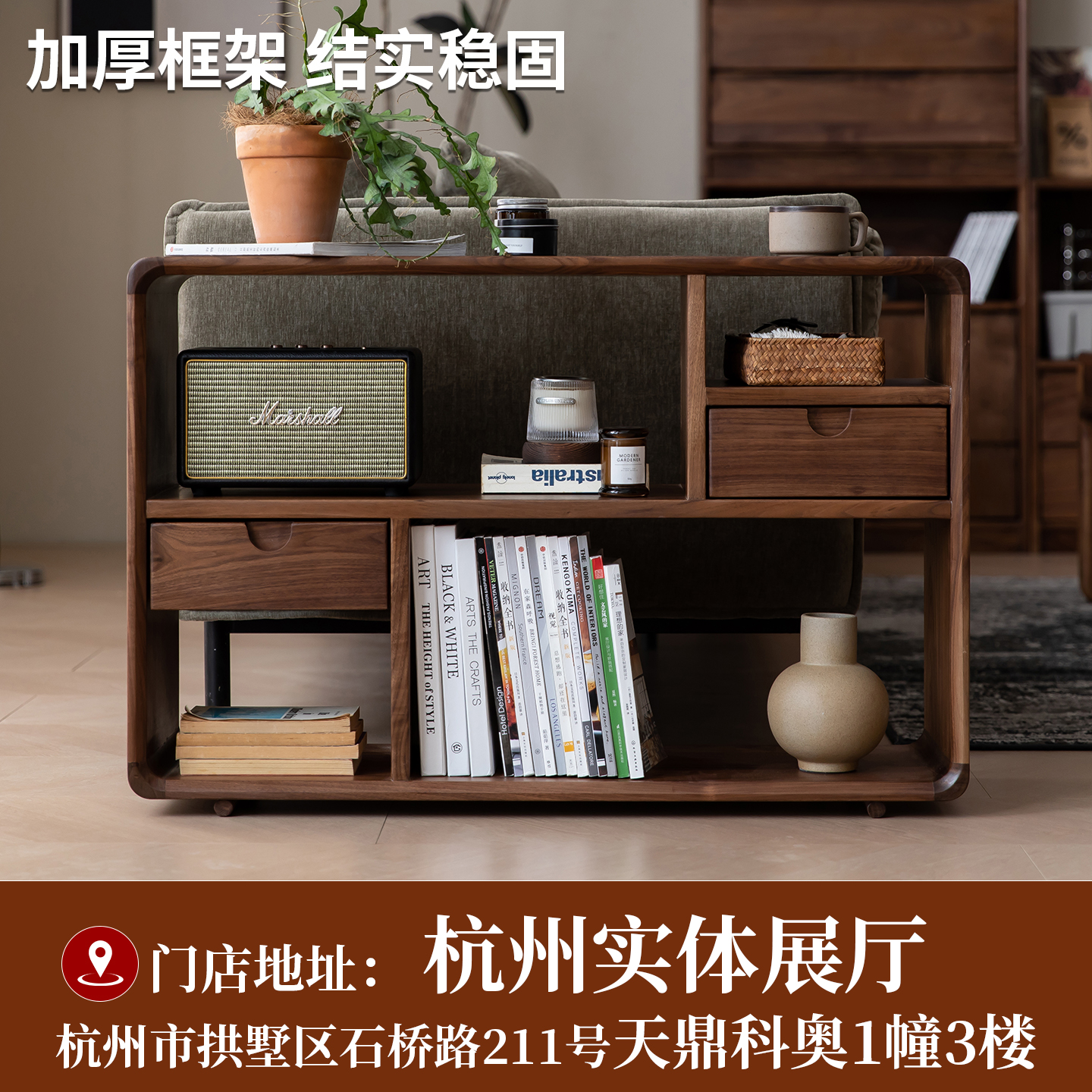 北美黑胡桃实木小书架储物架小边几沙发边柜侧边柜沙发旁边的边柜