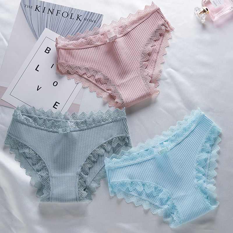 日系三角内裤少女学生中腰大码棉质无痕收腹性感蕾丝透气女士底裤
