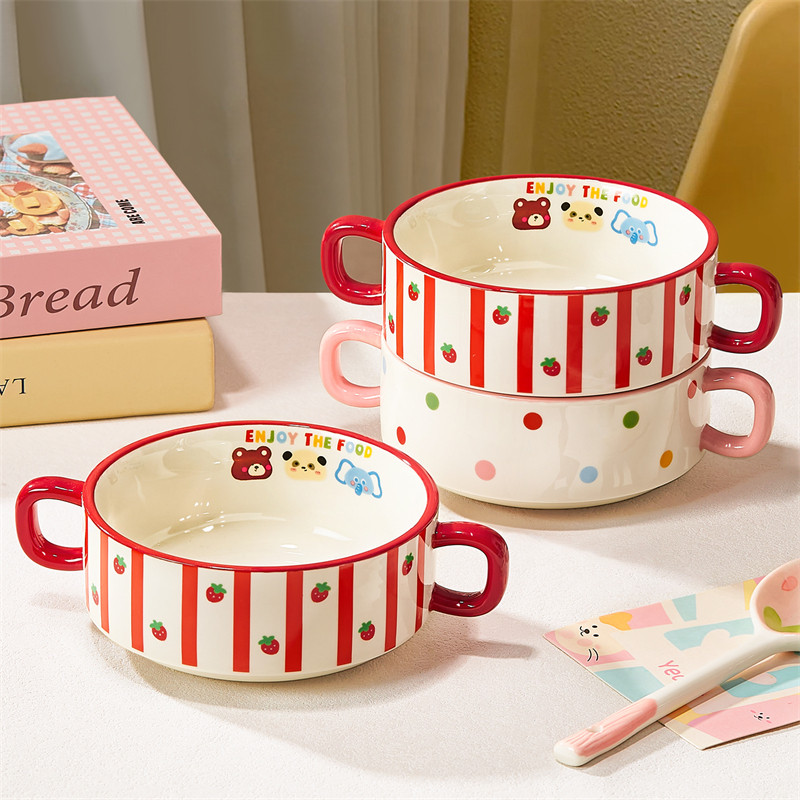 可爱双耳碗儿童饭碗陶瓷蒸蛋碗