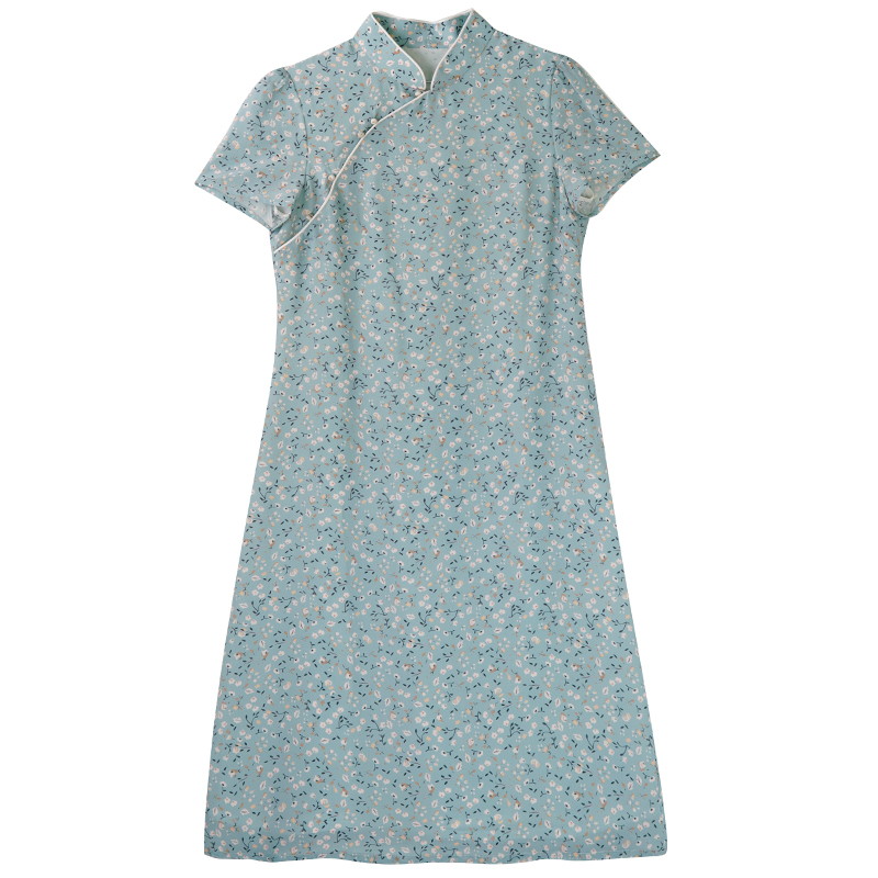 7-G22S-085【采蓝】瓷片高端复古设计师原创碎花改良旗袍