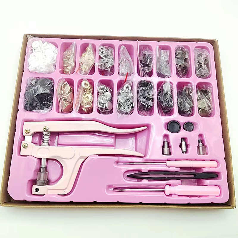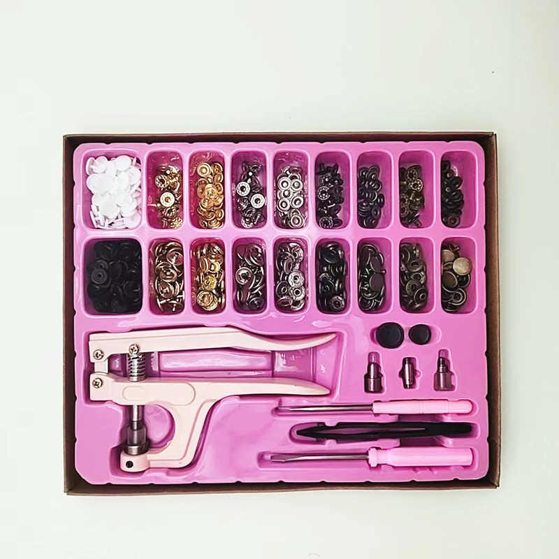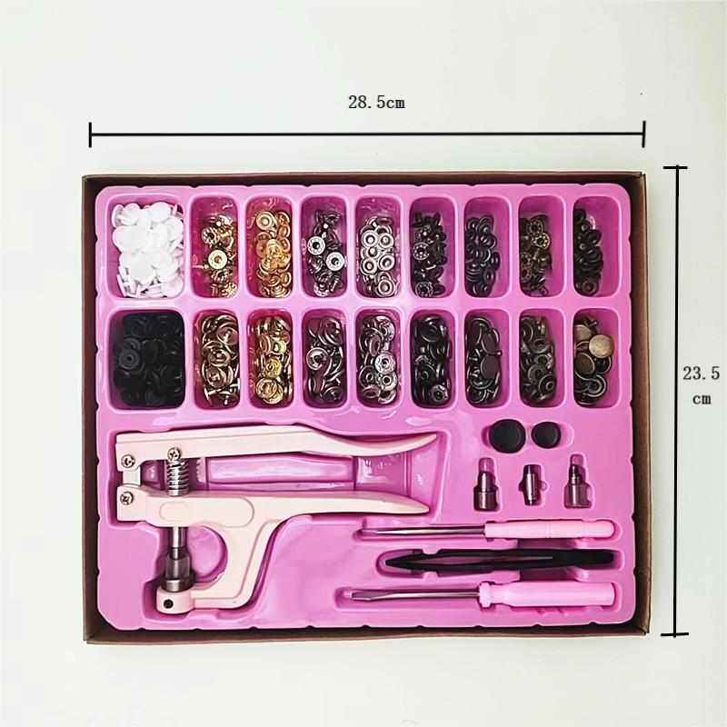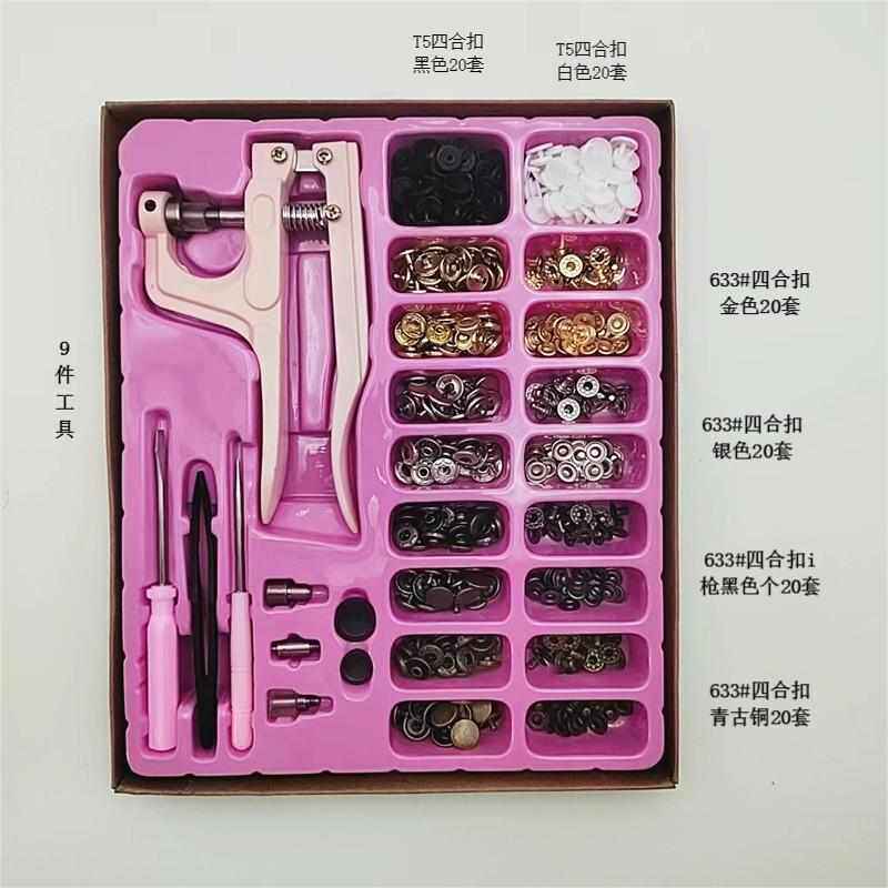 供120套四合扣配工具盒装T5树脂纽扣黑白色633#四合扣4色按扣