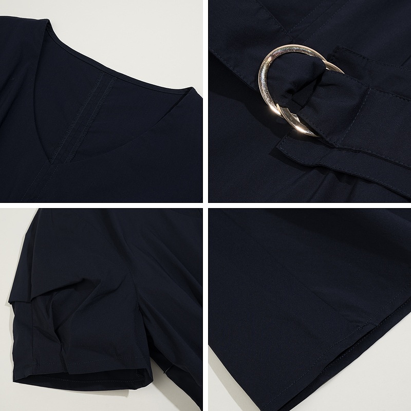 海尔曼斯夏季立体剪裁V领短袖通勤职场精英收腰连衣裙D1623C64