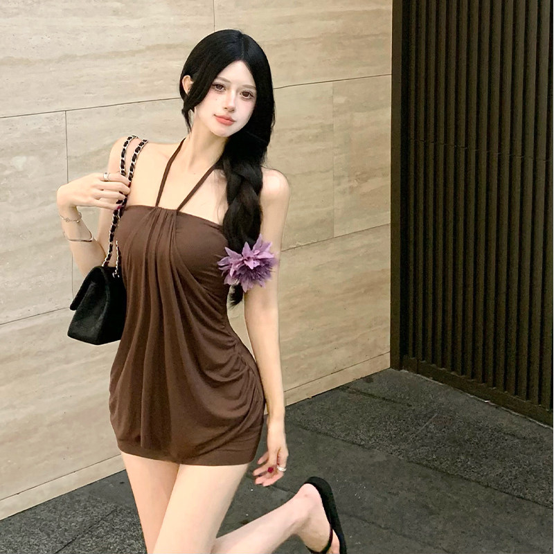 春季小个子女装加小码XXXS150cm显高挂脖抹胸收腰包臀裙连衣裙女