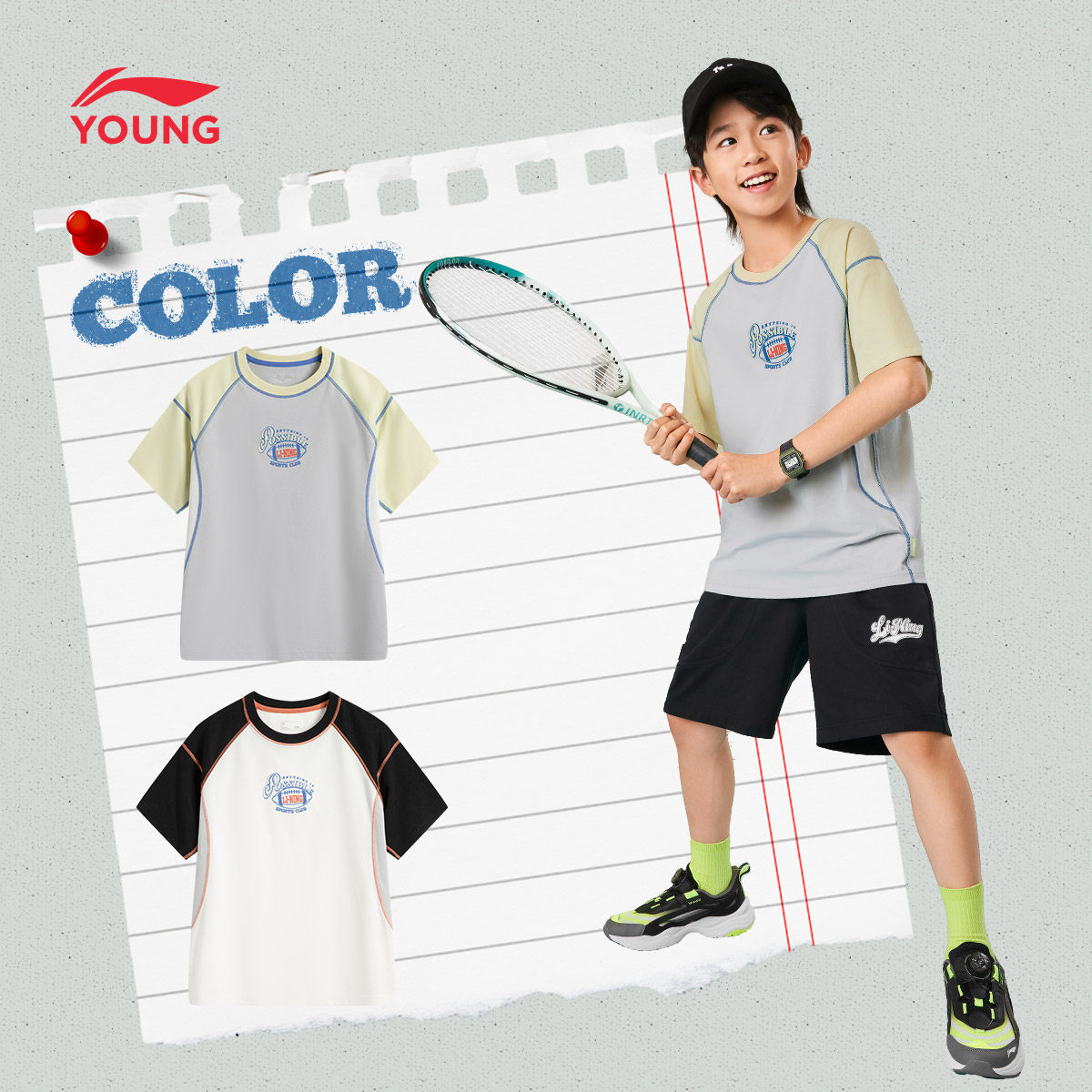 李宁儿童凉感短袖T恤2025新款夏季男童装女童中大童宽松夏装上衣