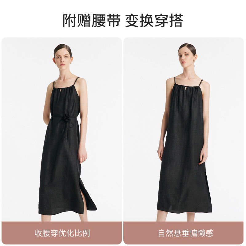 歌莉娅香云纱全真丝吊带连衣裙