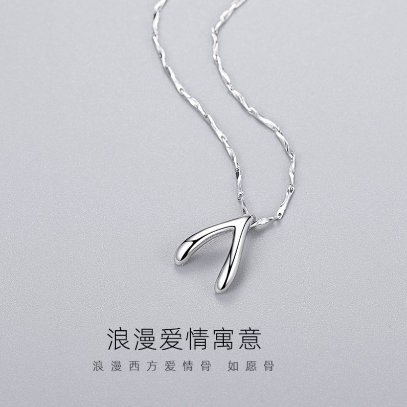 999足银许愿骨项链女纯银锁骨链女士吊坠简约气质生日礼物送女友