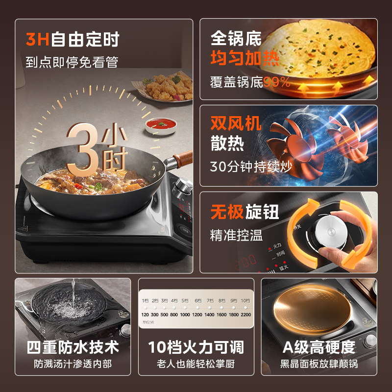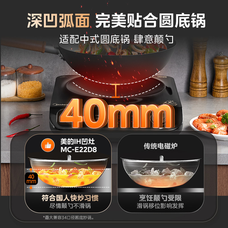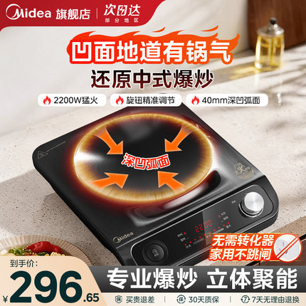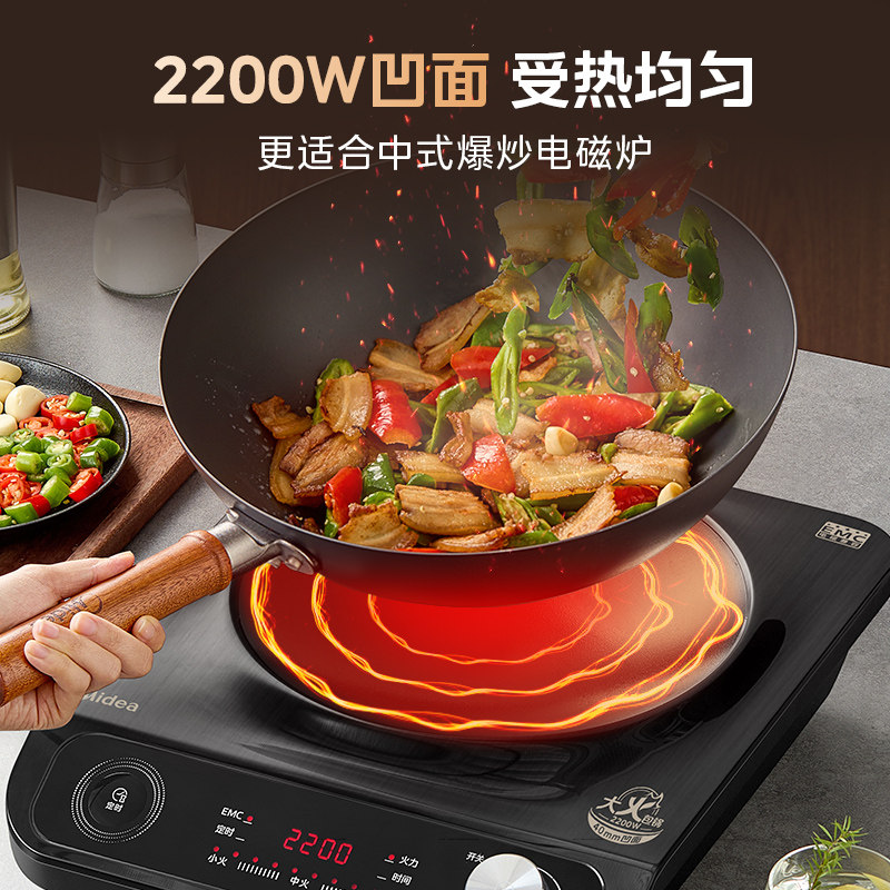 美的凹面电磁炉家用新款2200W炒菜火锅一体爆炒菜专用官方旗舰店
