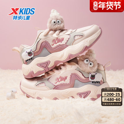 特步童鞋秋季新款儿童运动鞋女童防滑耐磨鞋子中大童魔术贴休闲鞋
