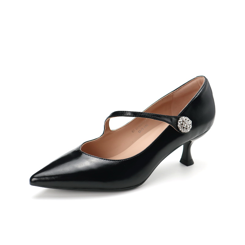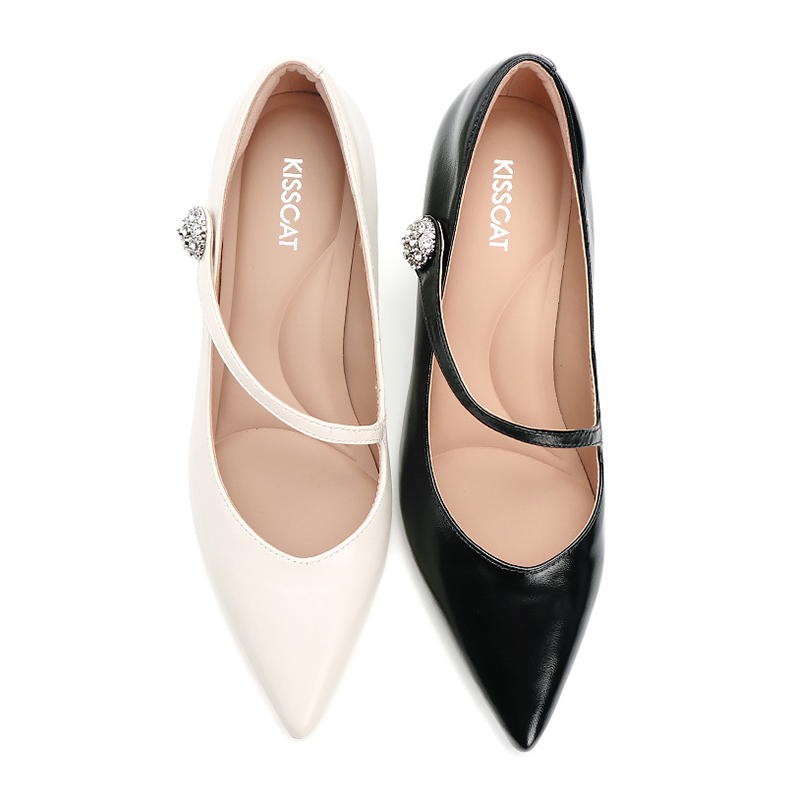 KISSCAT接吻猫2025新款尖头细跟高跟鞋一字扣通勤气质玛丽珍女鞋