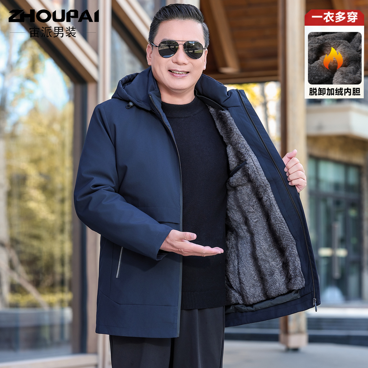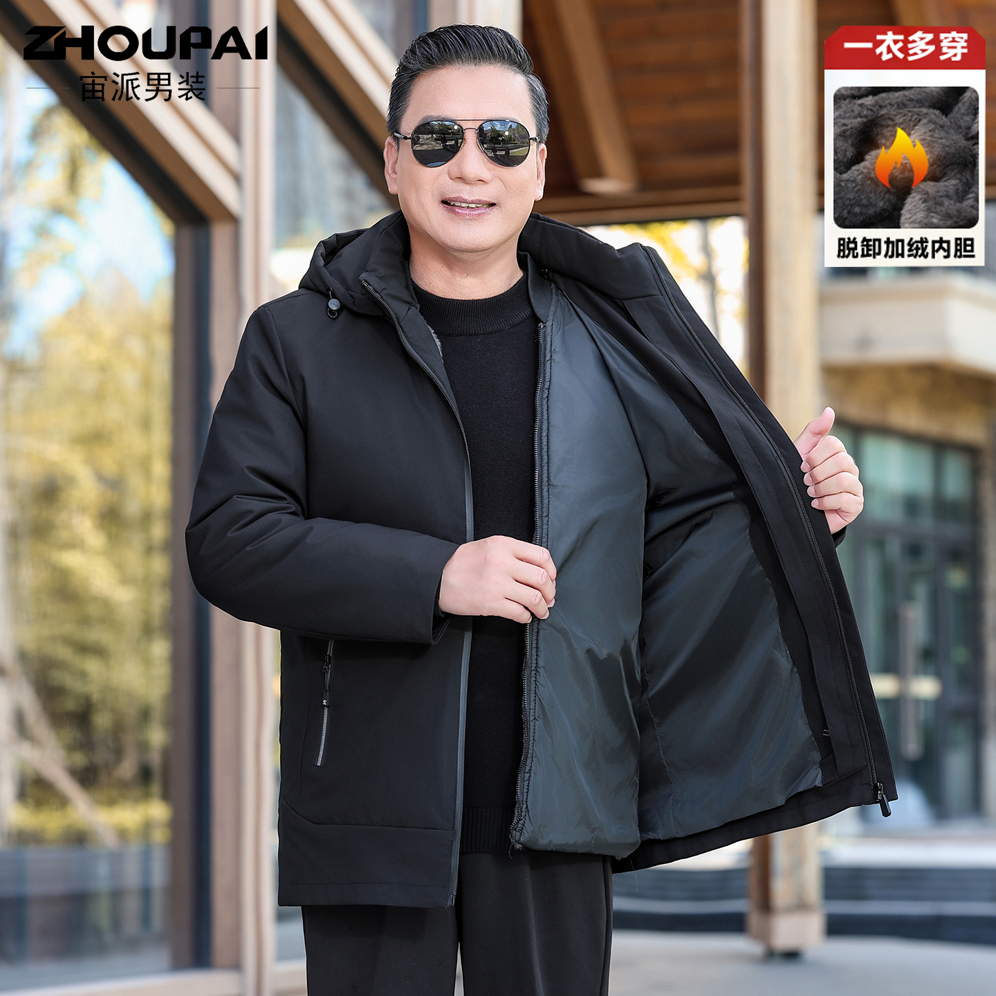 爸爸冬装外套中年男士棉衣加绒加厚可拆卸棉服中老年爷爷保暖棉袄