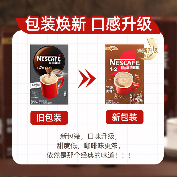 雀巢咖啡特浓三合一速溶咖啡粉90条盒装学生提神原味冲饮官方正品