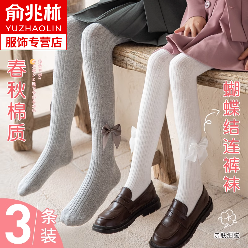 儿童打底裤春秋款纯棉女孩丝袜女童婴儿宝宝白色外穿连裤袜秋冬季