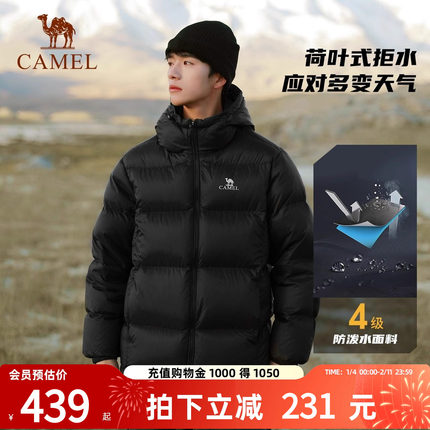 骆驼男女装羽绒服男加厚冬季2025新款连帽情侣保暖面包服黑色外套