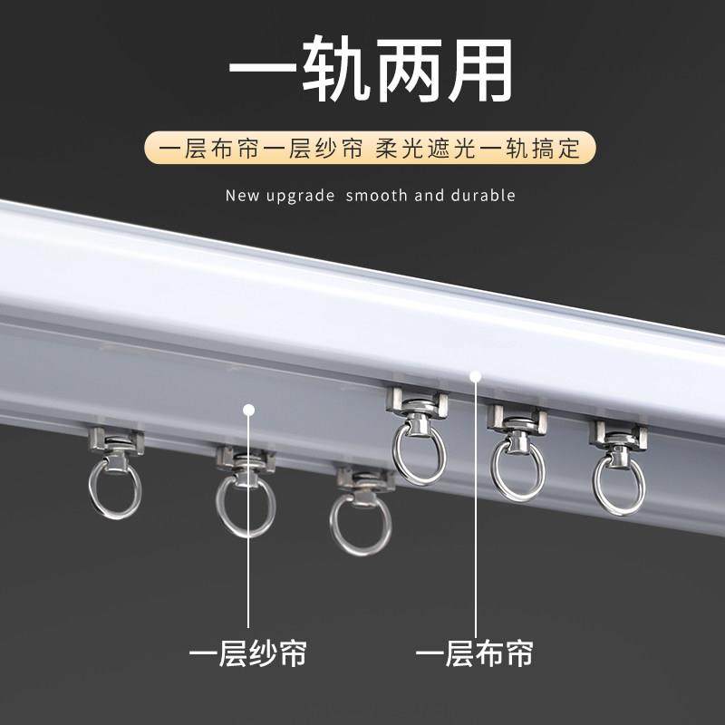 静音窗帘轨道双轨顶装滑轨双层滑道窗帘杆导轨窗帘盒免安装码打孔