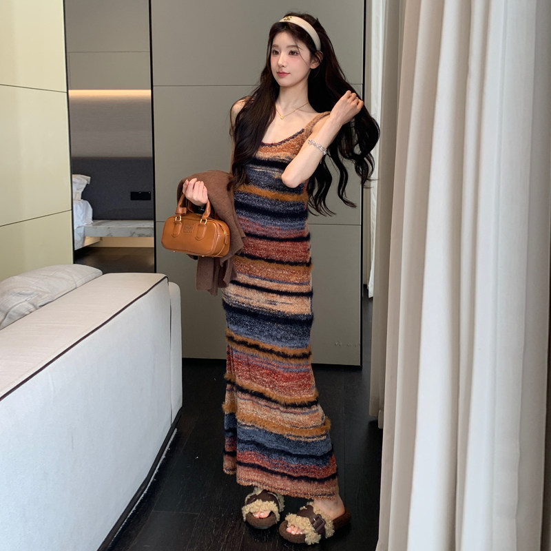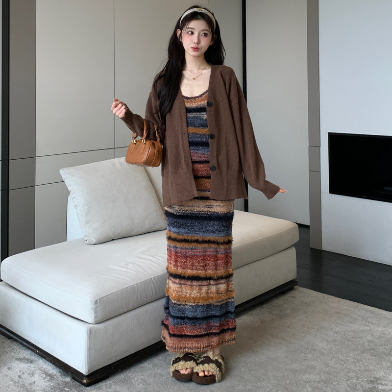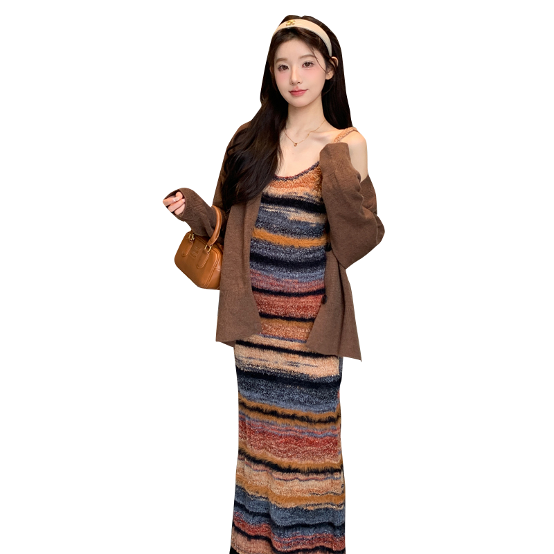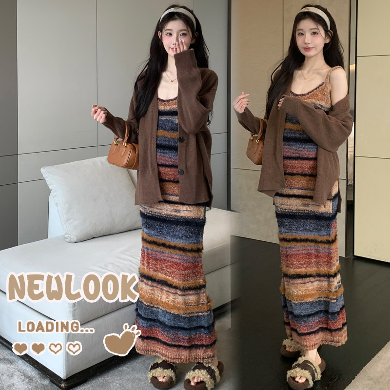 孕妇秋装2025新款连衣裙潮妈孕期穿搭开衫披肩条纹背带裙秋冬套装