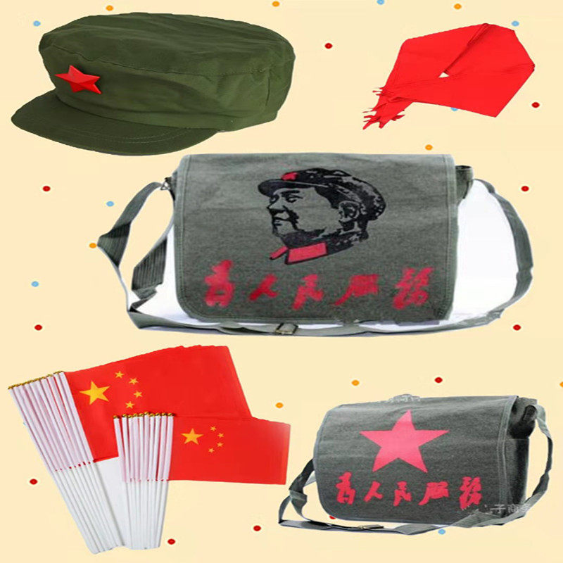 70年代怀旧帽子80八十年代知青帽子解放帽蓝色帽子军绿色斜挎背包