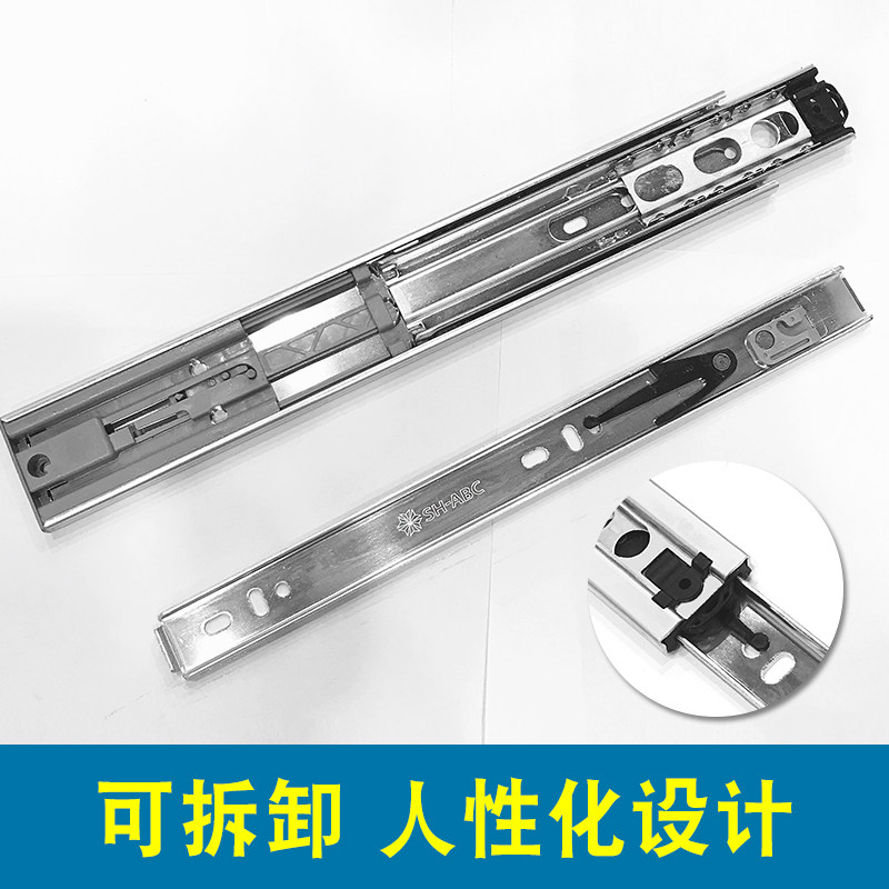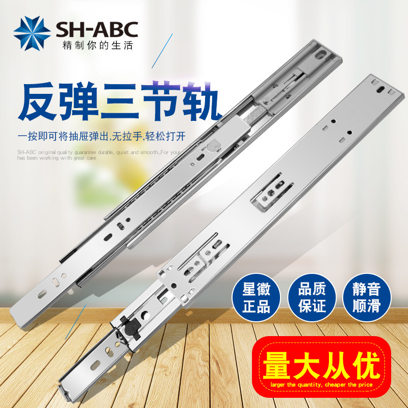 SH星徽加厚免拉手反弹3三节导轨按弹触碰静音钢珠橱柜抽屉轨道