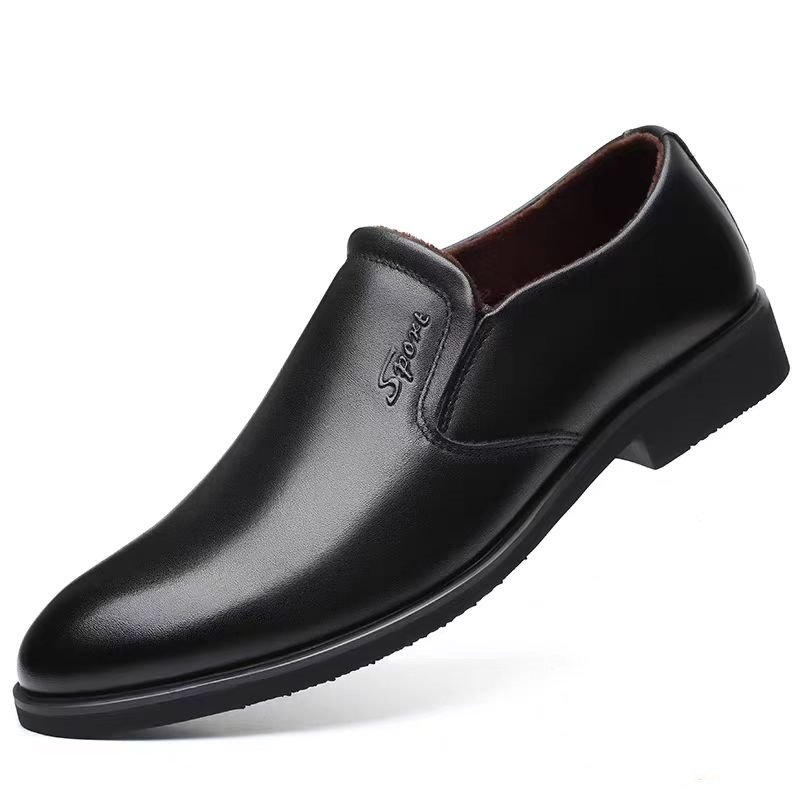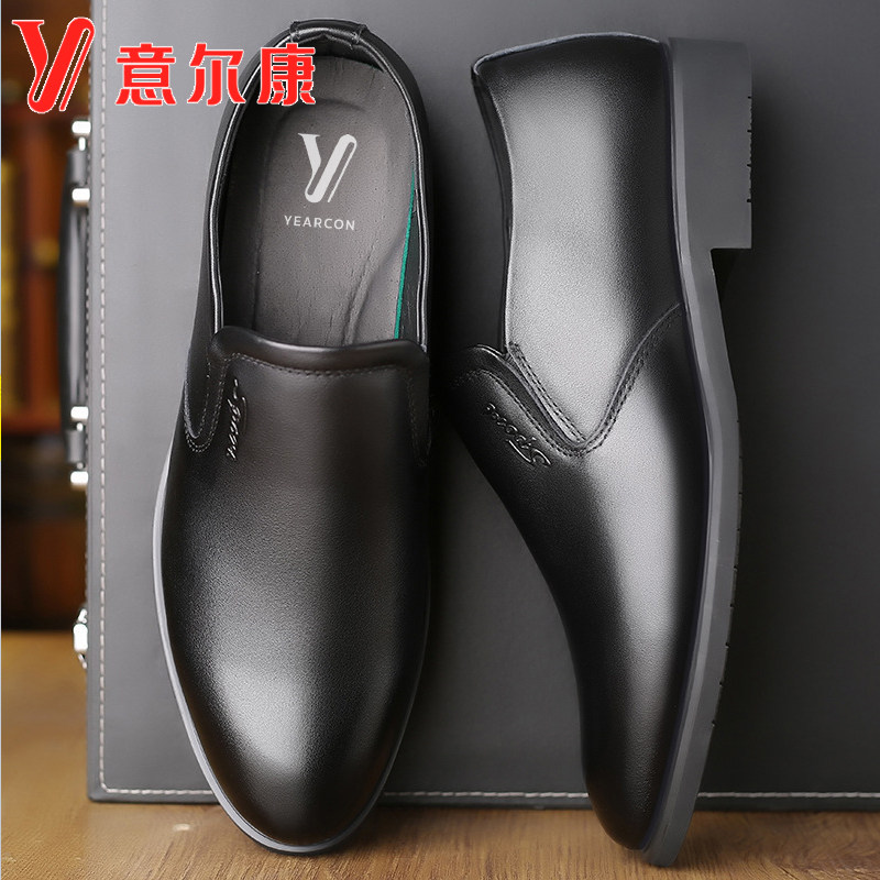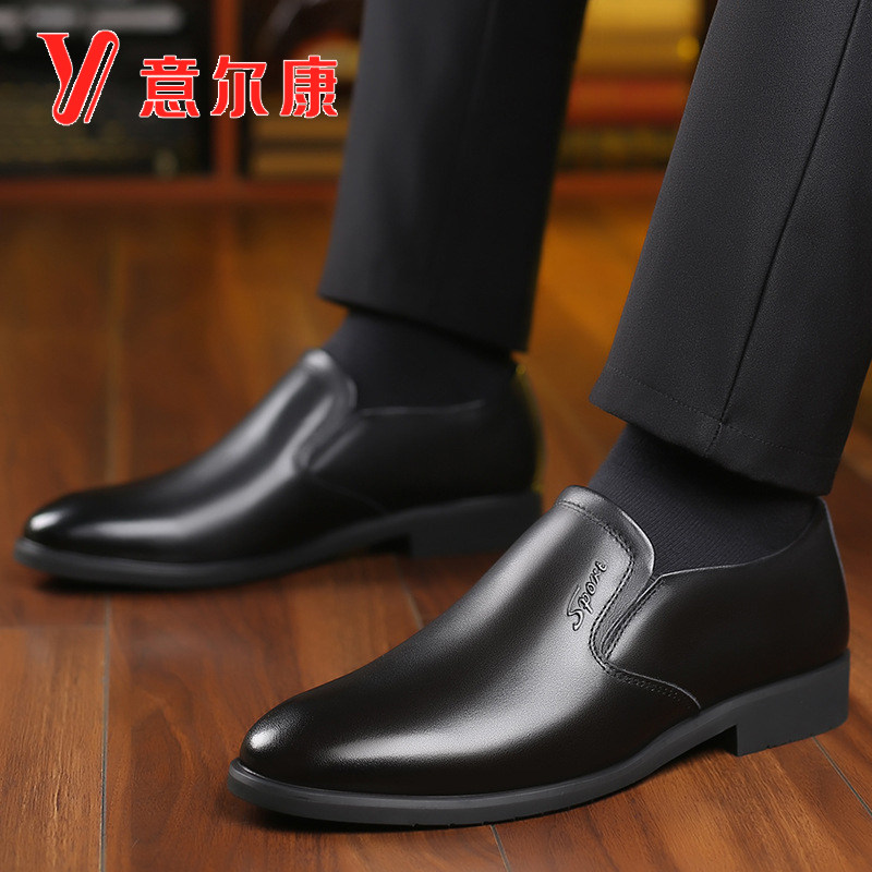 意尔康男鞋头层牛皮商务休闲棉皮鞋男士加绒保暖一脚蹬上班工作鞋