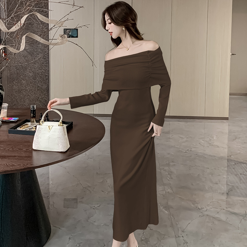 150cm显高女装秋季加小码XXXS小个子一字肩长袖连衣裙高级感礼服