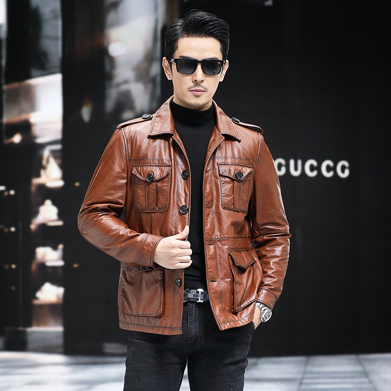 皮衣男真皮油蜡牛皮夹克猎装军旅秋季新款外套工装单潮流修身