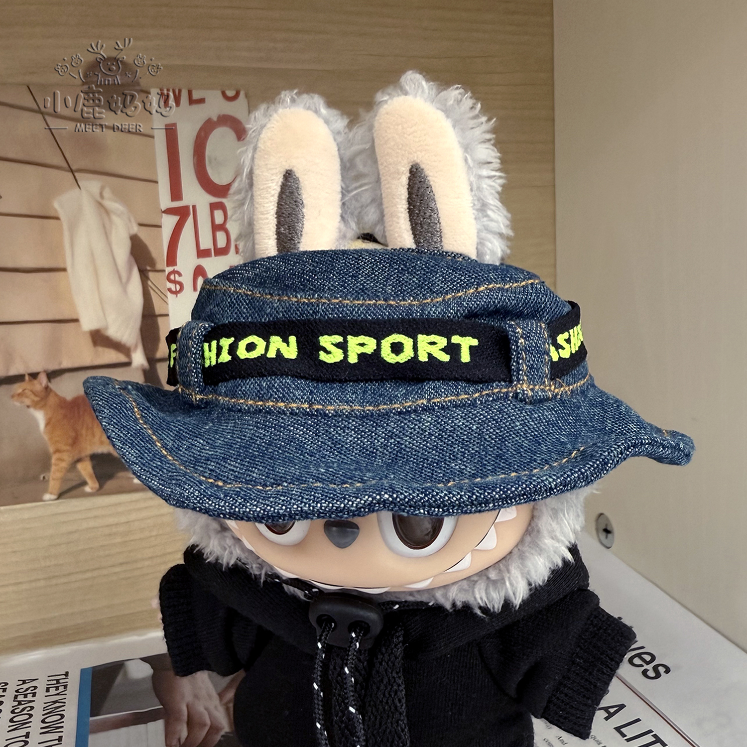 17cm搪胶拉布布帽子单拍labubu一二三代通用渔夫帽棒球帽单品潮裤
