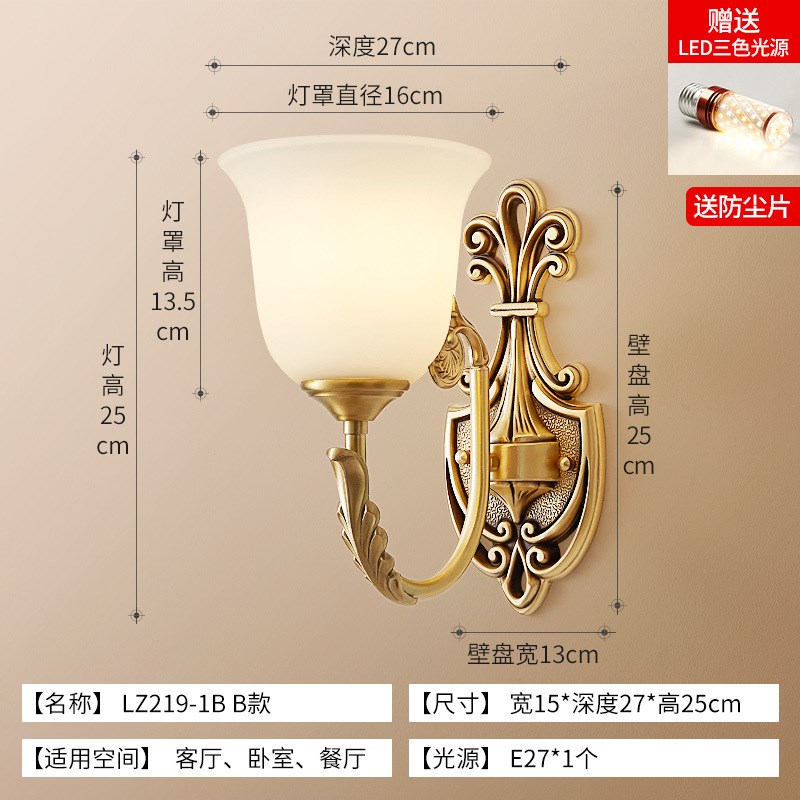 美式简约全铜壁灯卧室床头灯轻奢客厅背景墙灯欧式复古楼梯墙壁灯