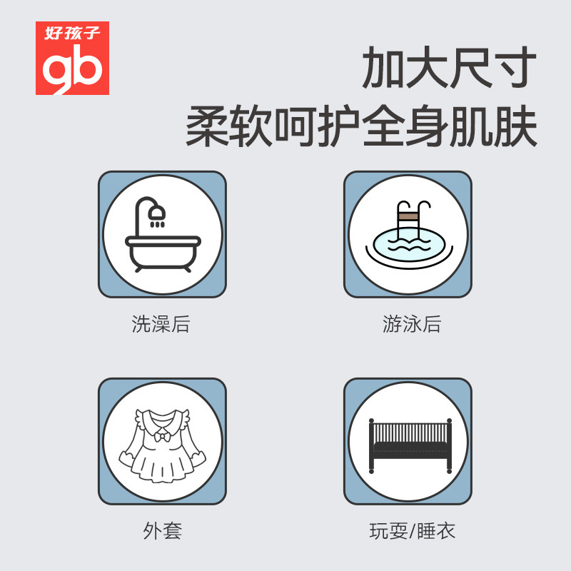 gb好孩子婴儿浴披风超柔吸水珊瑚绒带帽浴袍儿童宝宝洗澡防风斗篷