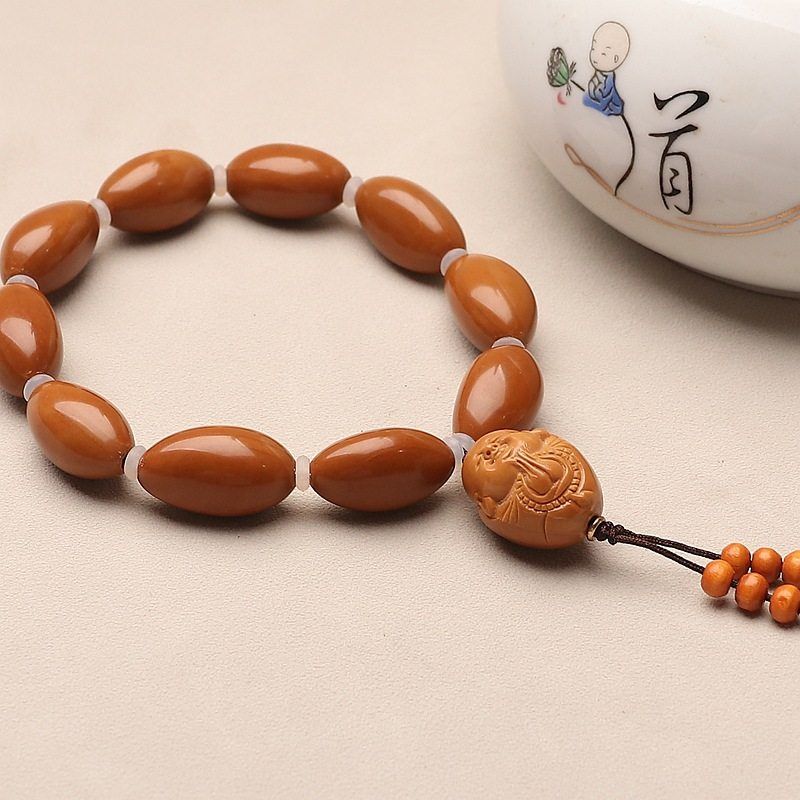 手工打磨素核虔诚一心小沙弥勒橄榄核雕刻文玩手串单圈手链男女款