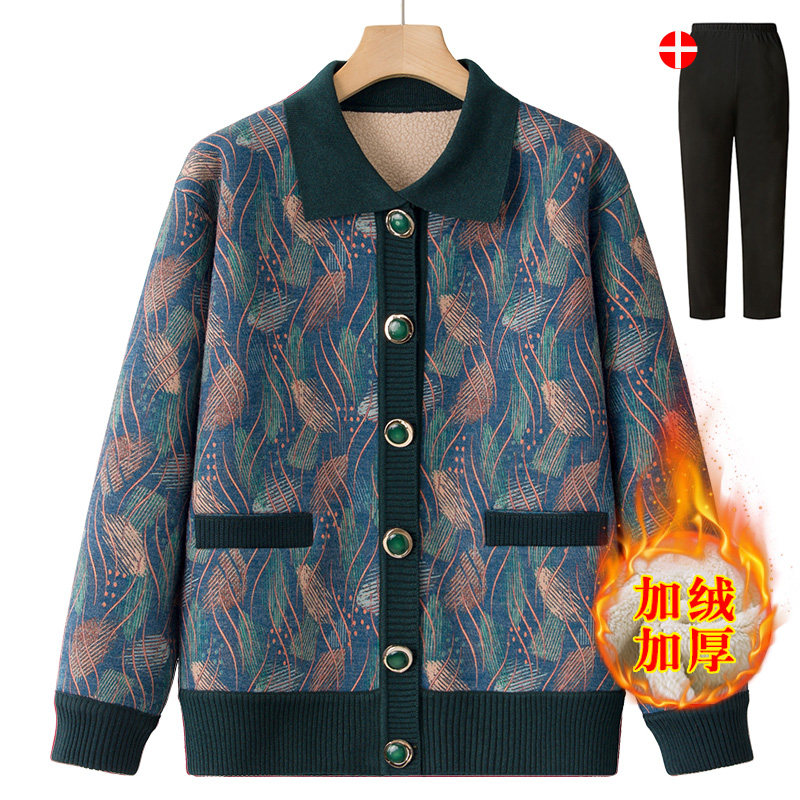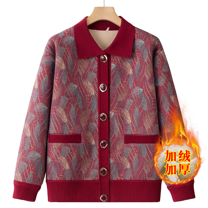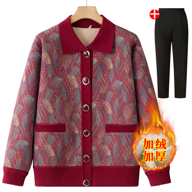 妈妈装中老年人奶奶毛衣针织衫开衫加绒加厚秋冬外套宽松冬装上衣