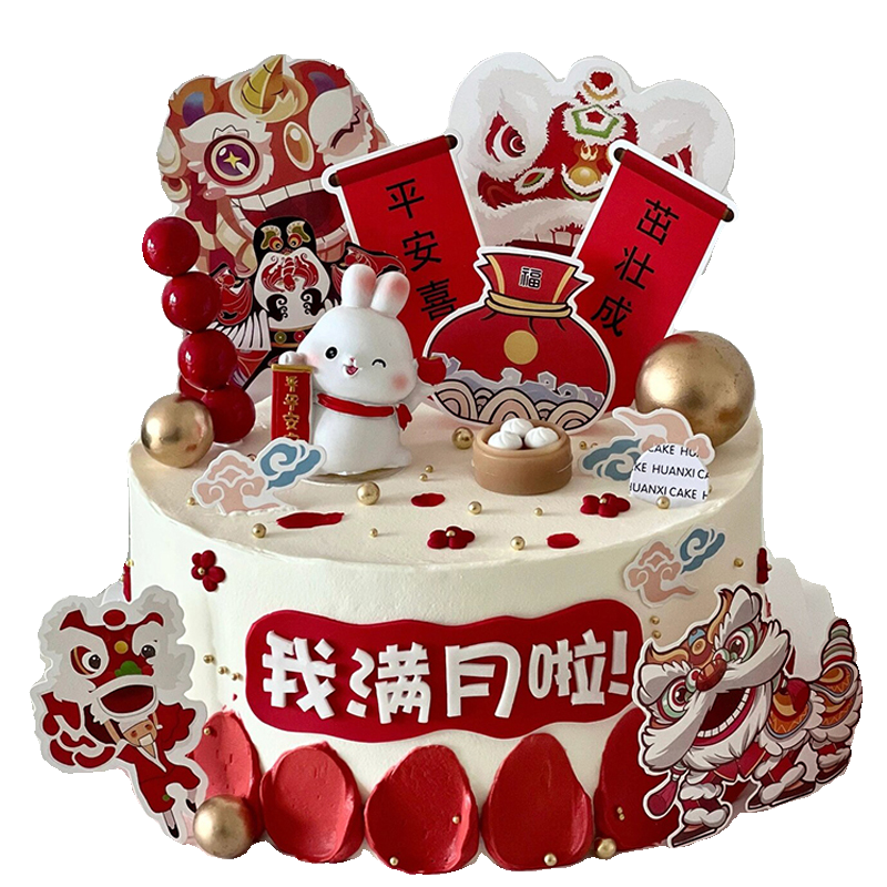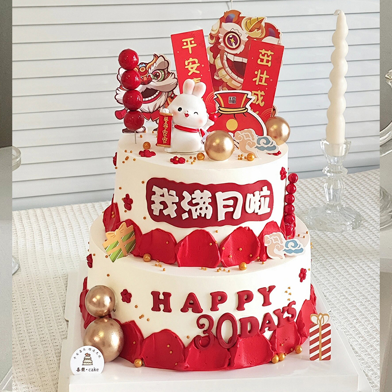 兔宝宝满月百天蛋糕装饰摆件国潮风男孩女孩小兔子一周岁生日插件