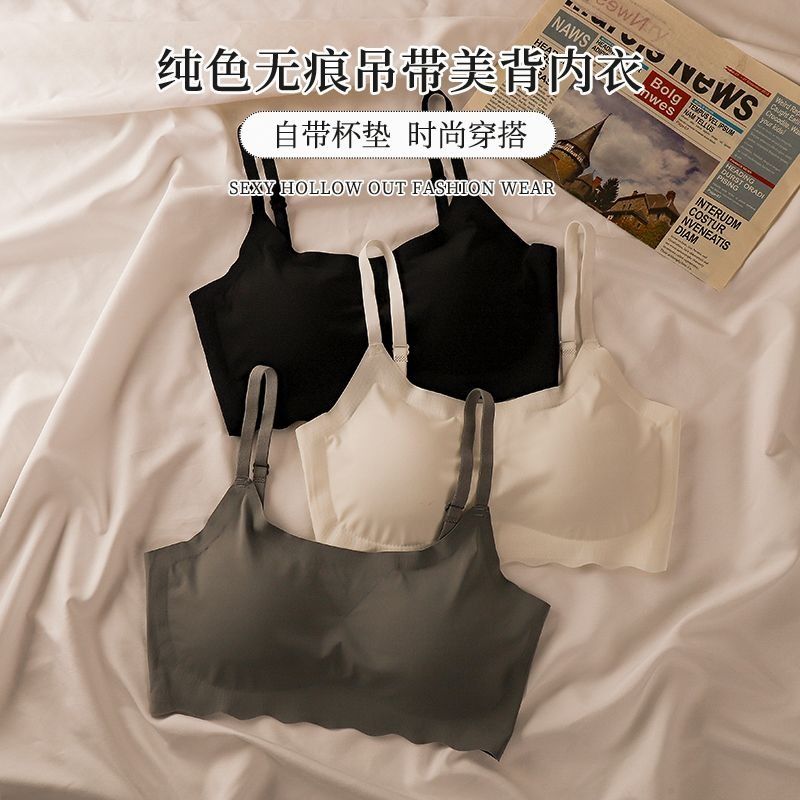 无痕学生聚拢吊带运动文胸冰丝夏季内衣少女背心女防下垂固定黑色