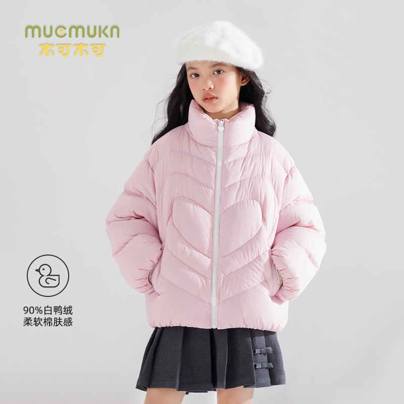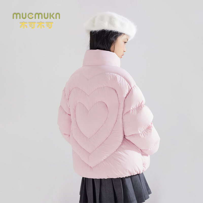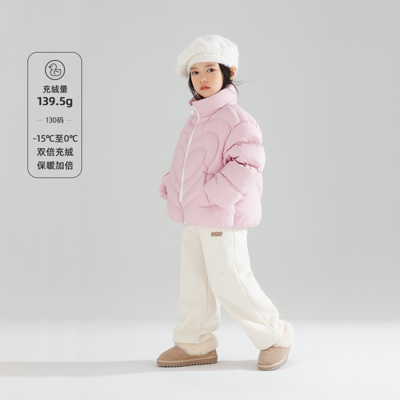 【高充绒】女童甜心粉色羽绒服90白鸭绒轻盈保暖爱心绗线面包服