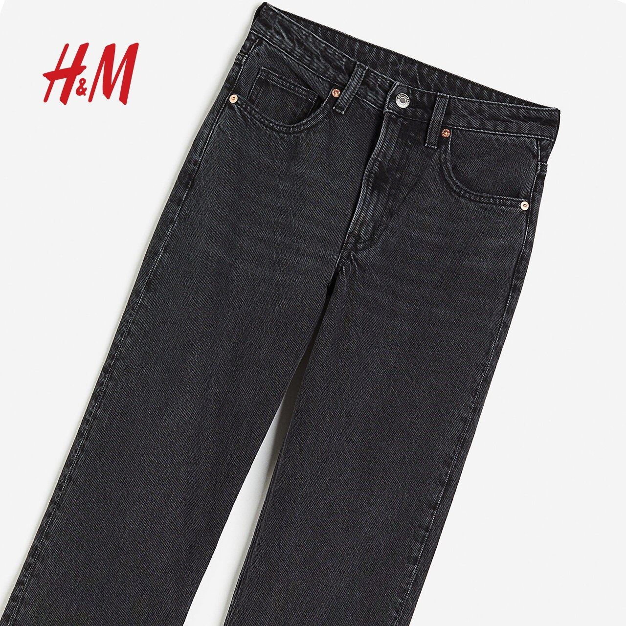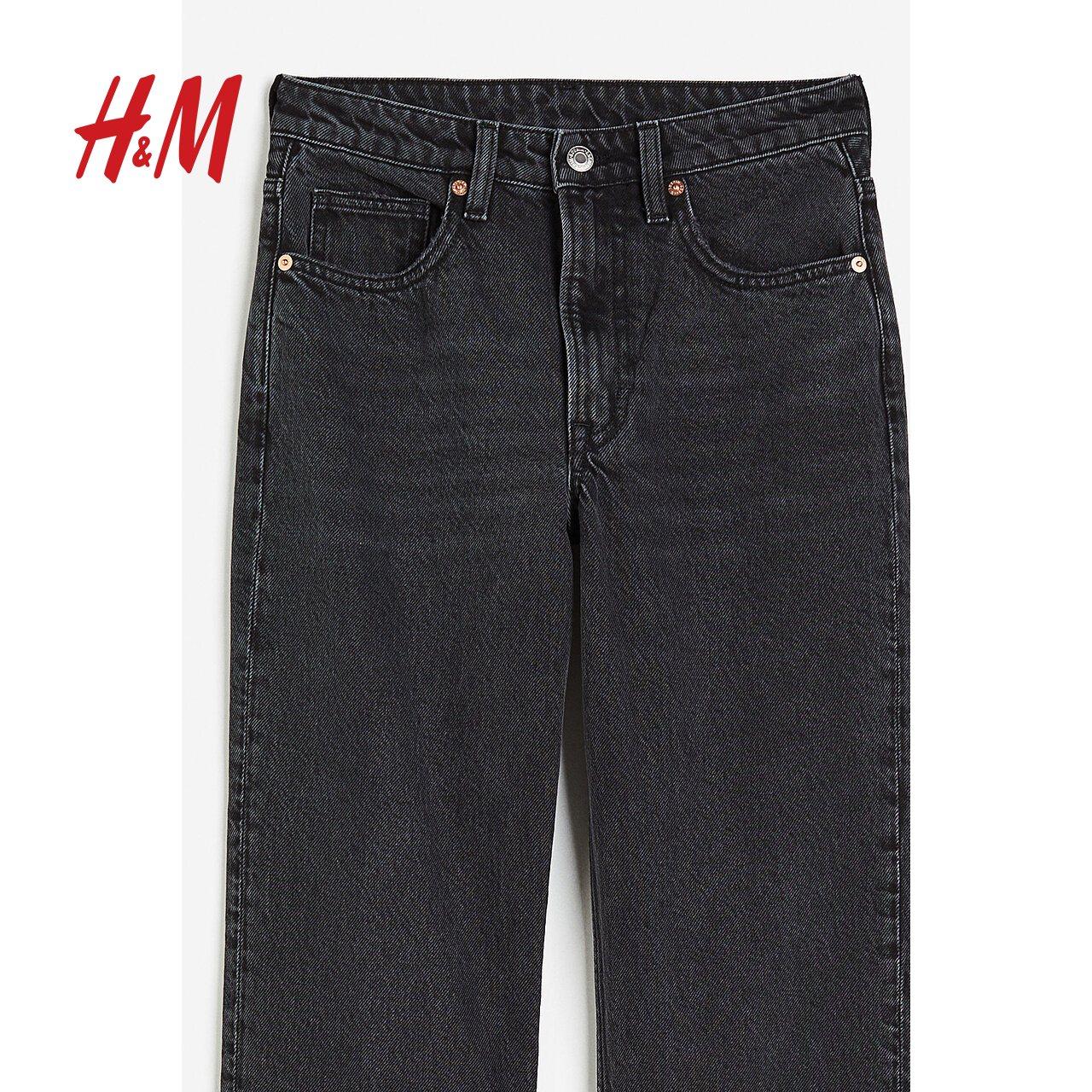 HM女装牛仔裤冬季舒适时尚修身直筒高腰休闲薄款牛仔裤1188010