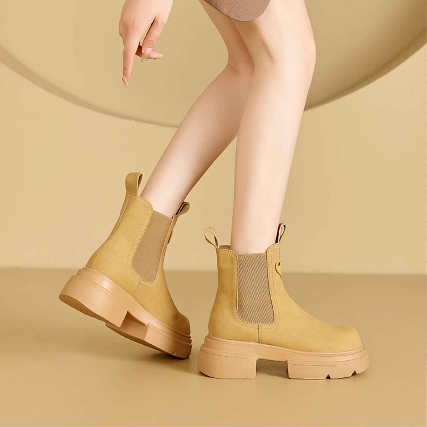 百丽夏2025新款厚底一脚蹬靴女