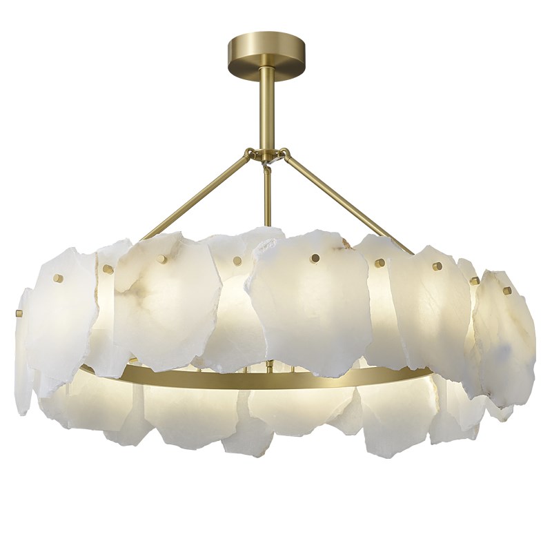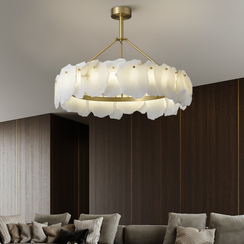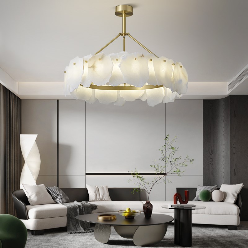 现代简约全铜g云石吊灯新中式客厅餐厅餐吊家用大气茶室别墅灯具