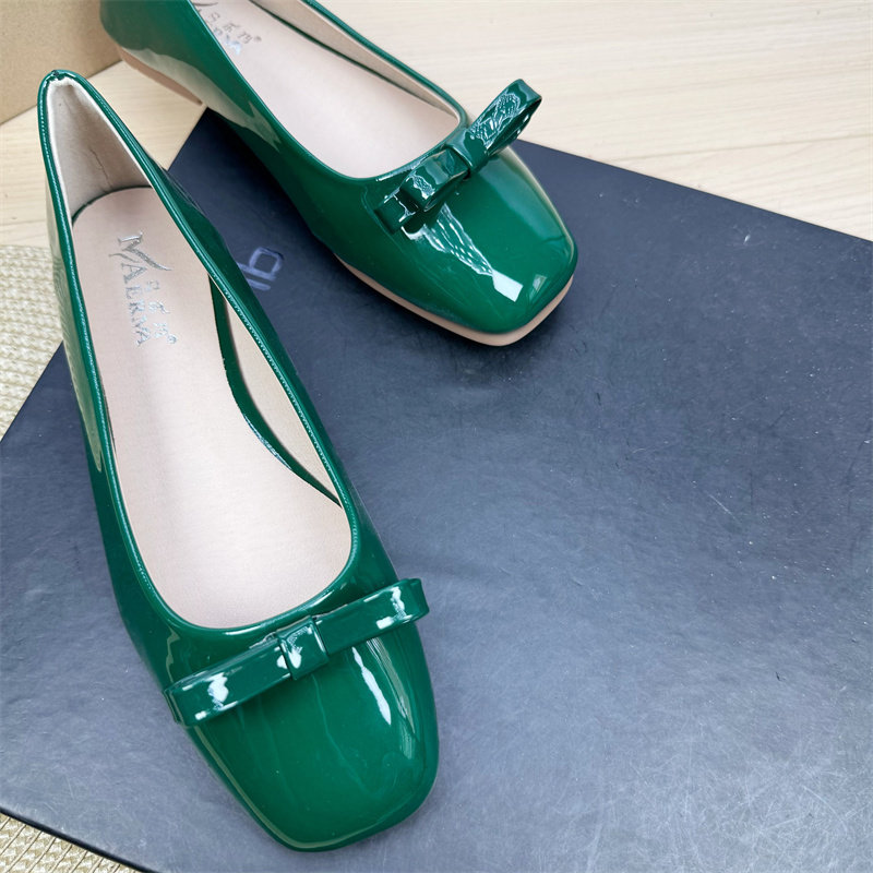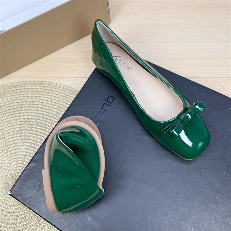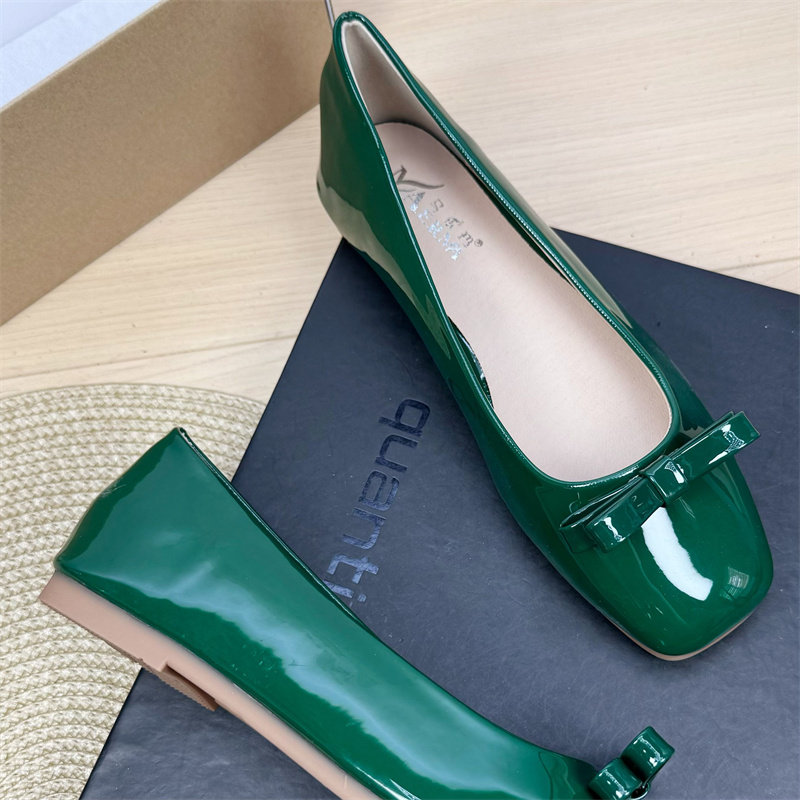 2025夏季新款浅口奶奶鞋方头单鞋女平底鞋漆皮蝴蝶结仙女风温柔鞋
