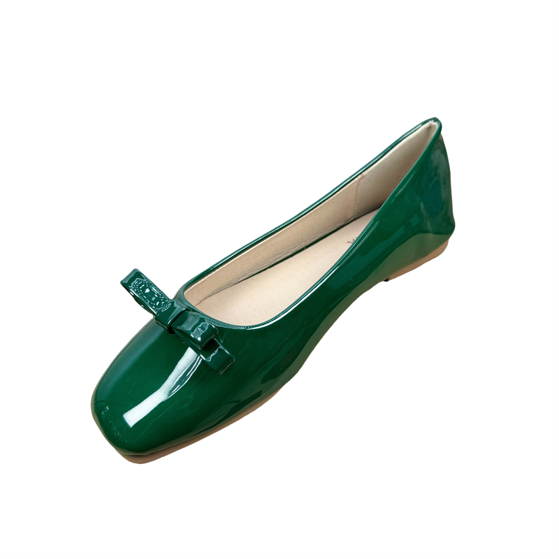 漆皮方头浅口蝴蝶结平底鞋