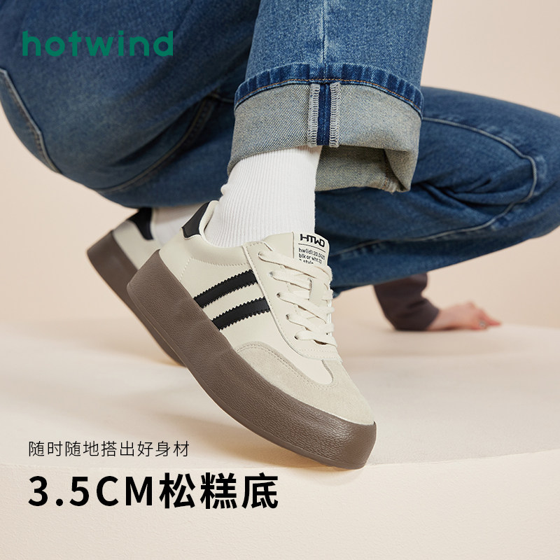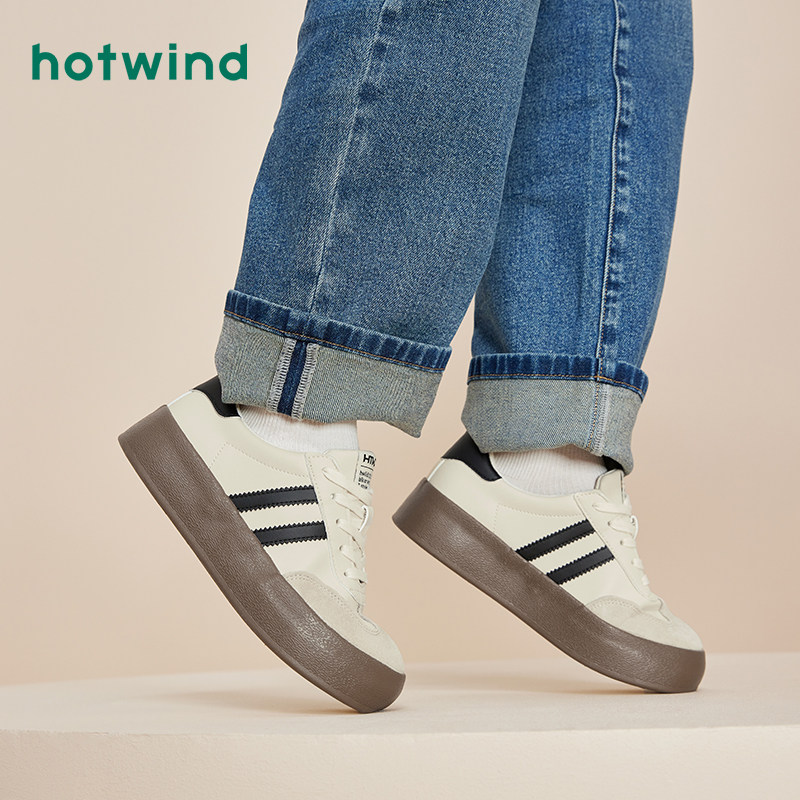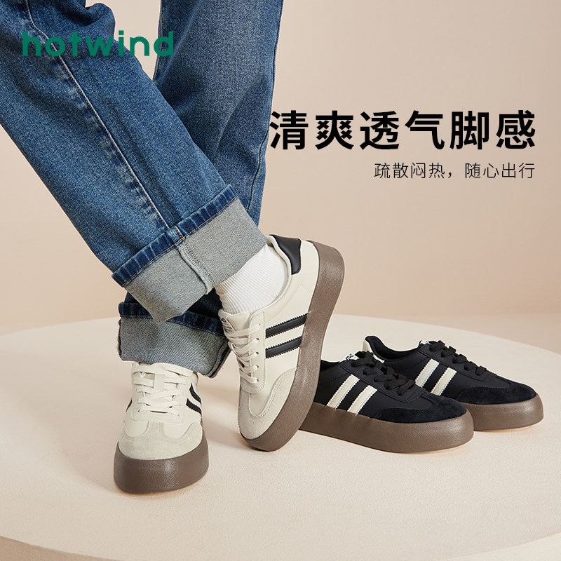 热风女鞋26年春秋季新款女士厚底复古时尚休闲板鞋拼色学生德训鞋