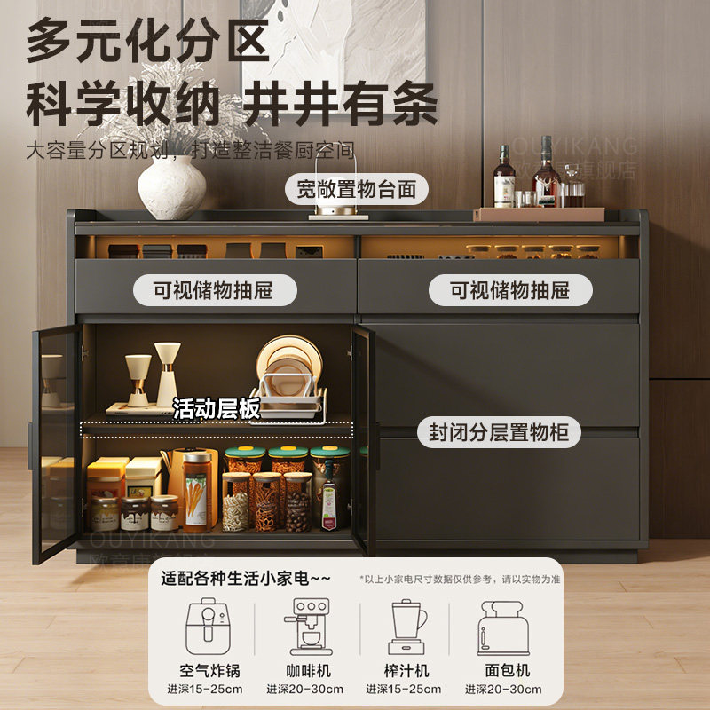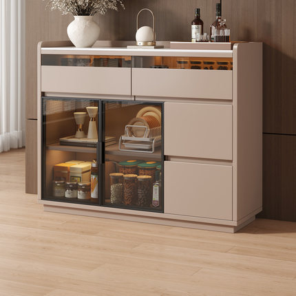轻奢风岩板餐边柜小户型客厅储物柜2026新款玻璃门茶水柜靠墙收纳