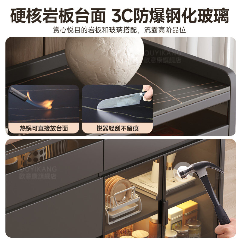 轻奢岩板玻璃门餐边柜靠墙茶水柜