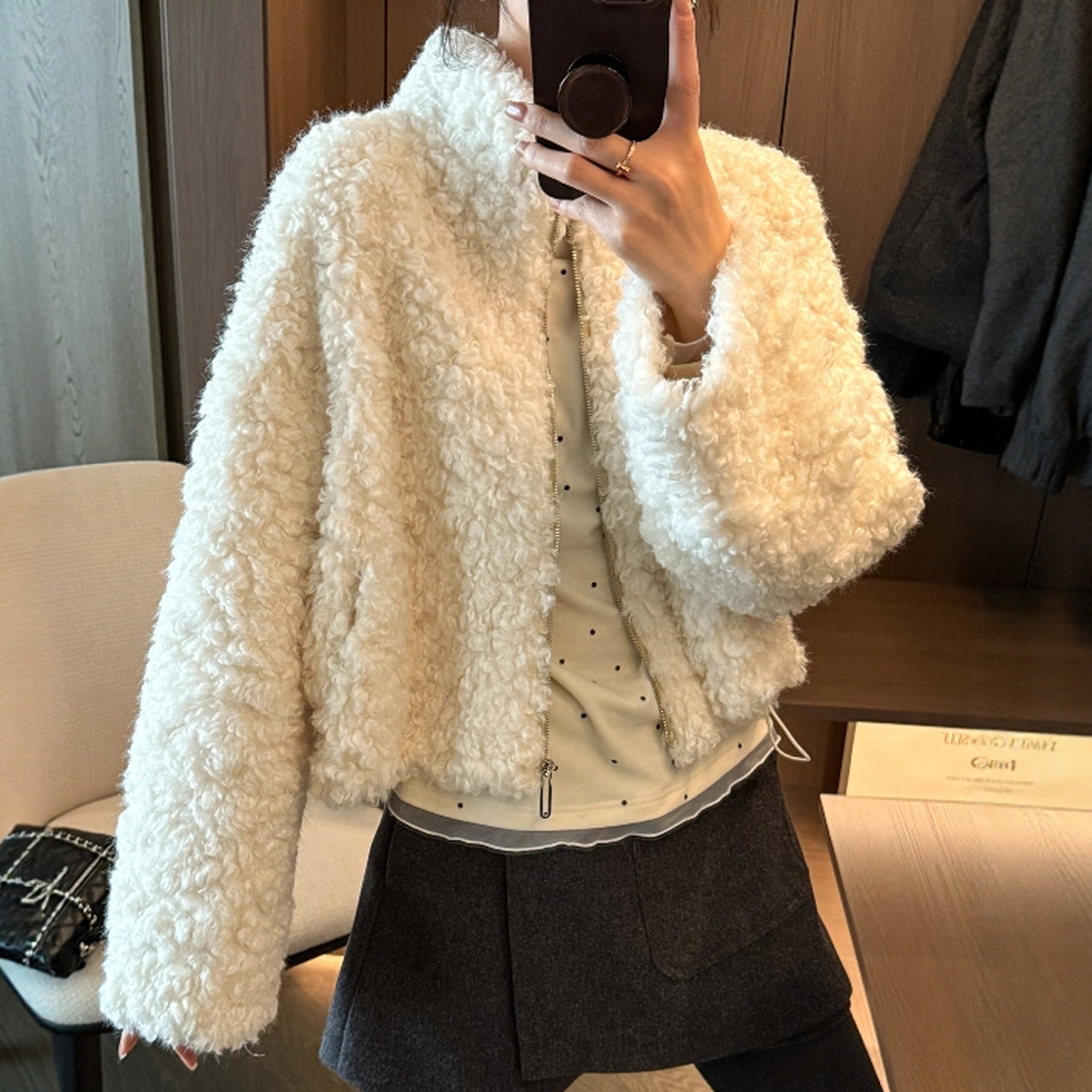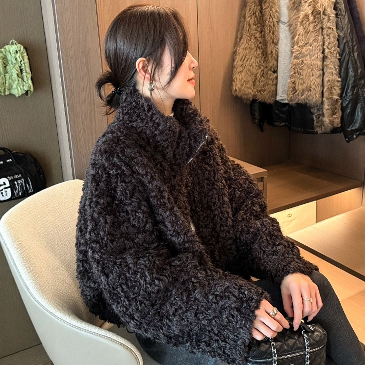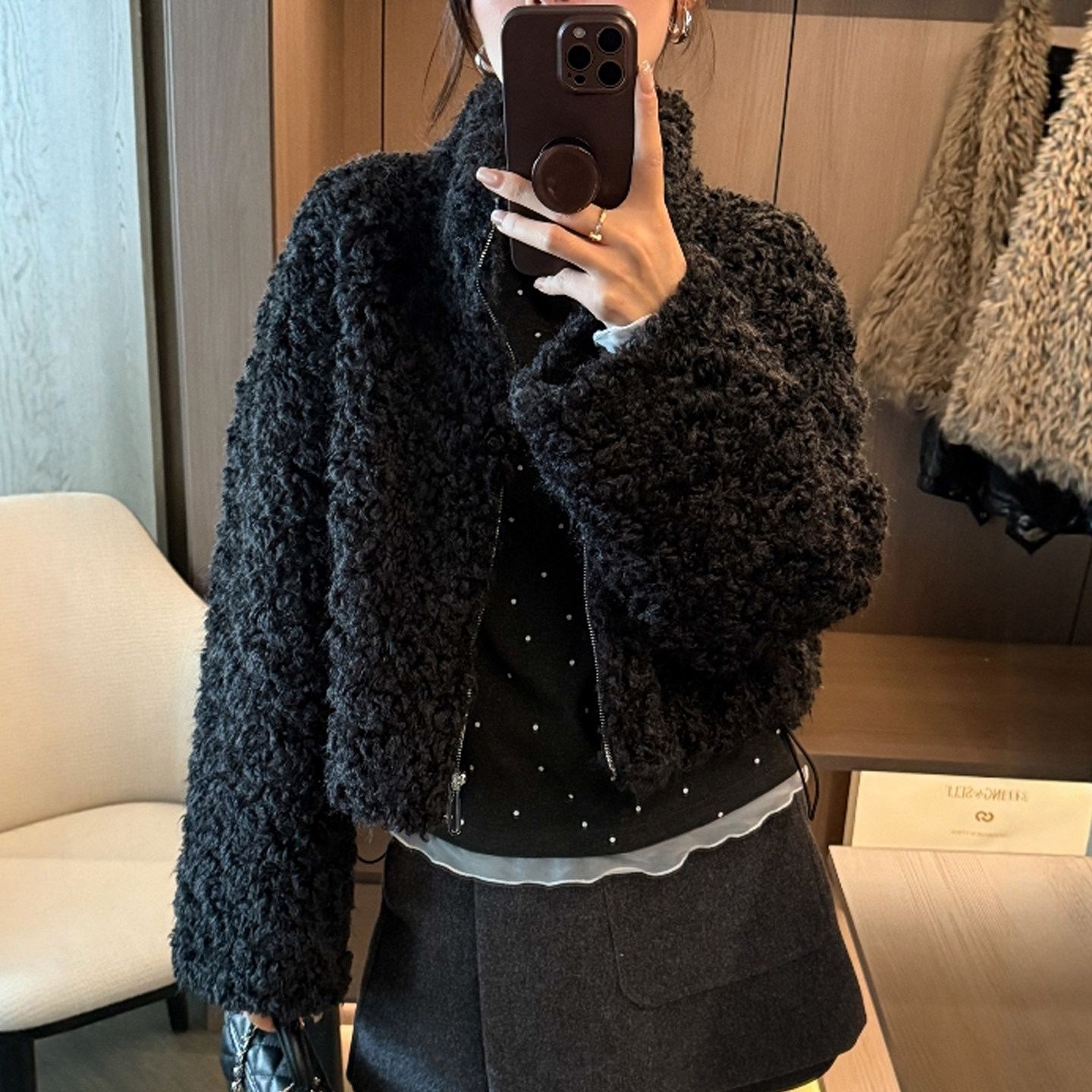 羊卷毛皮毛一体皮草外套女欧洲站2025冬装新款欧货女装短款上衣潮