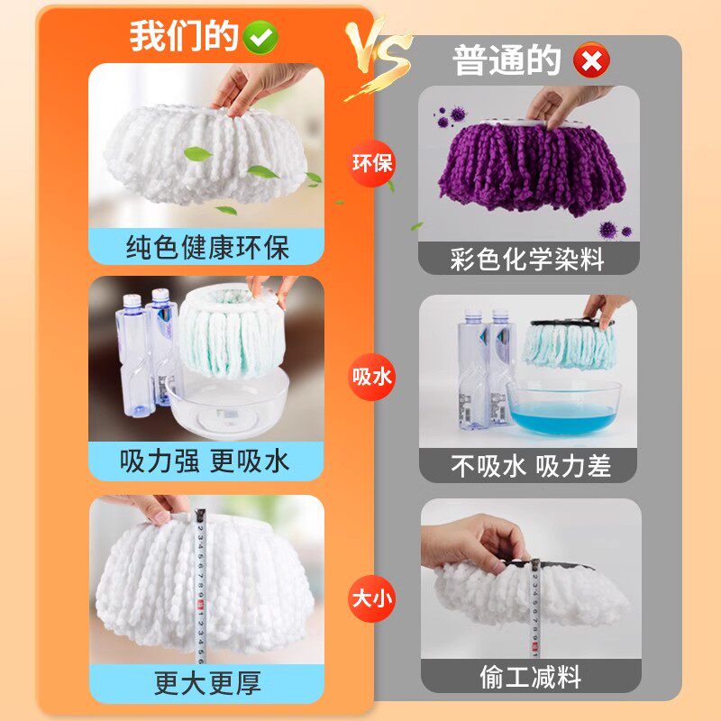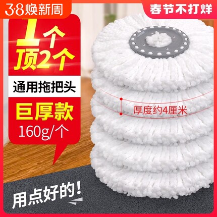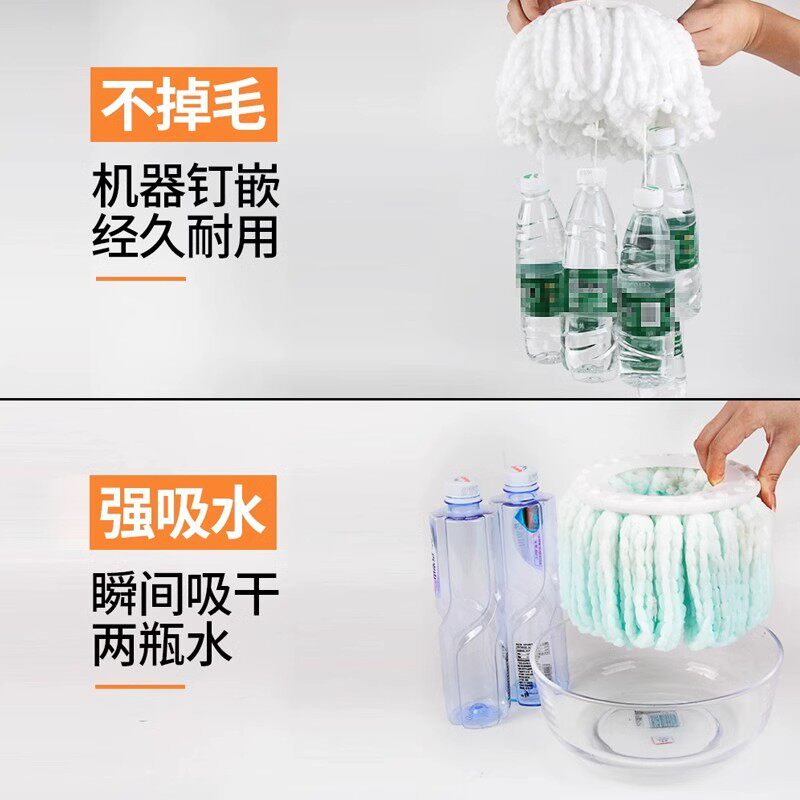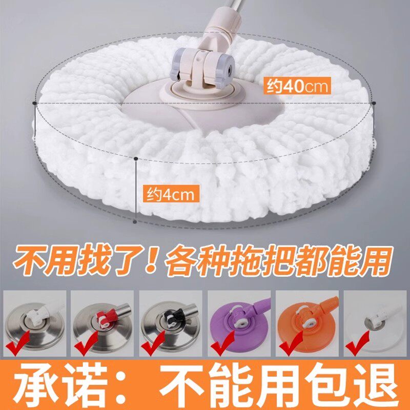 旋转拖把头通用拖杆墩布头家用圆配件替换头非纯棉头免手洗脱水