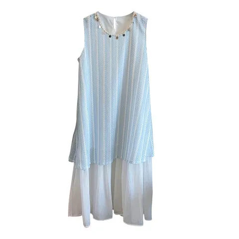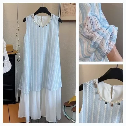 连衣裙镂空假两件甜美女夏季2025无袖新款潮背心波西米亚长裙拼接